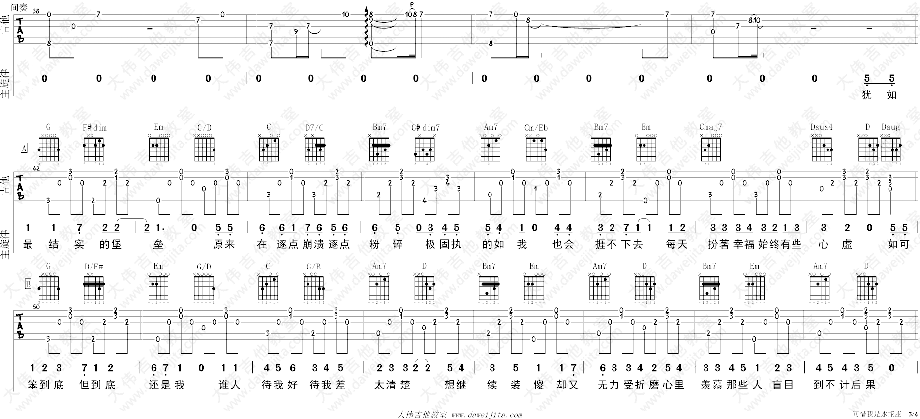 - 幼稚完吉他谱指弹版_《雷霆扫毒》片尾曲_独奏谱