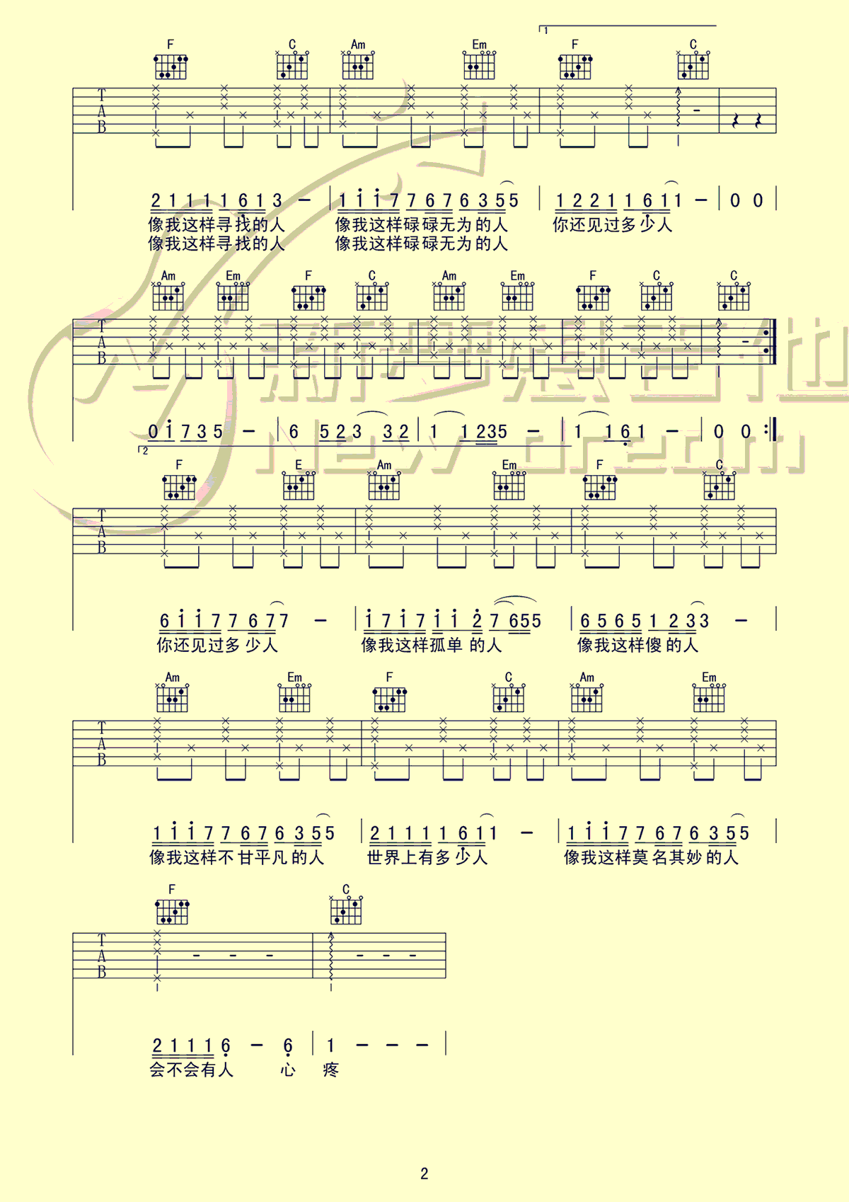 - 像我这样的人吉他谱C调 毛不易 高清弹唱谱 六线谱