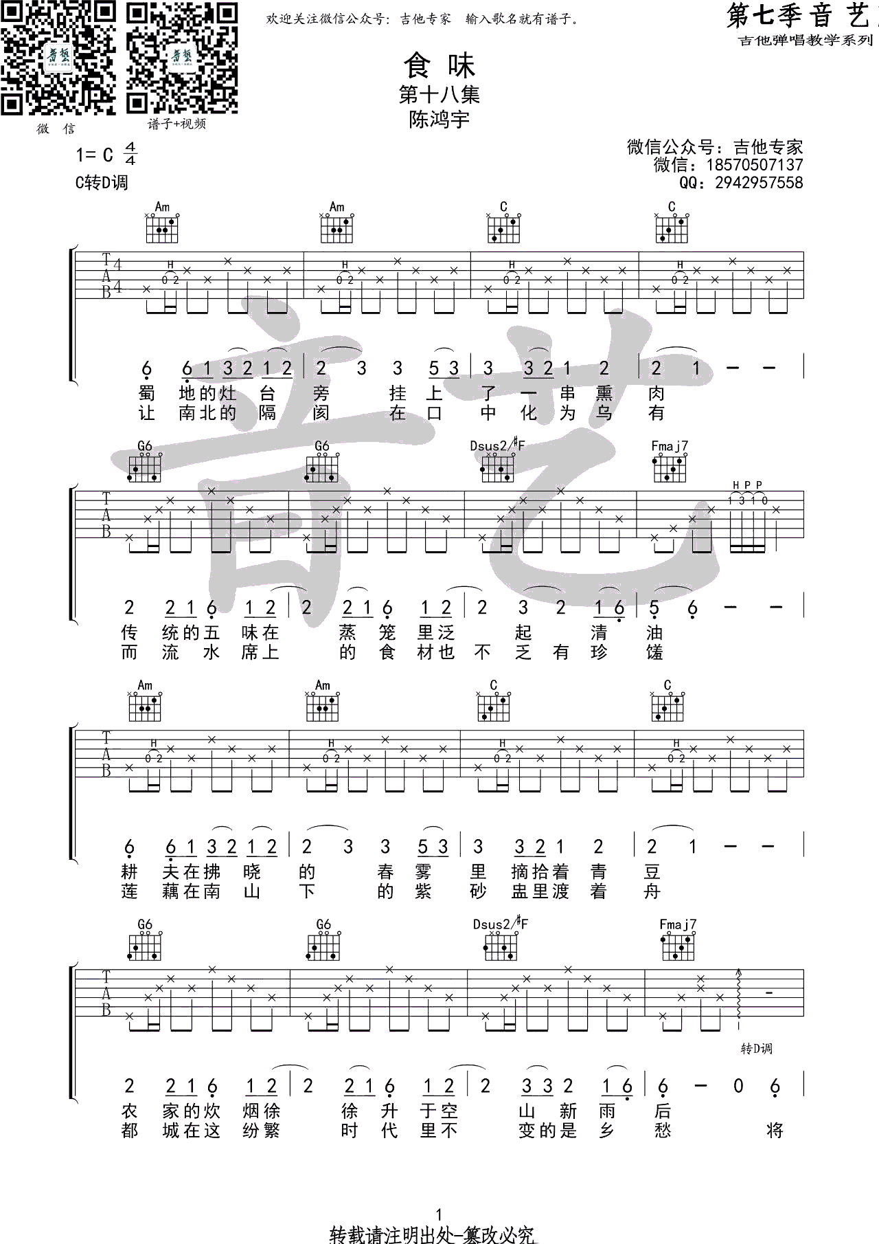 - 陈鸿宇《雨好》吉他谱 D调弹唱六线谱 图片谱