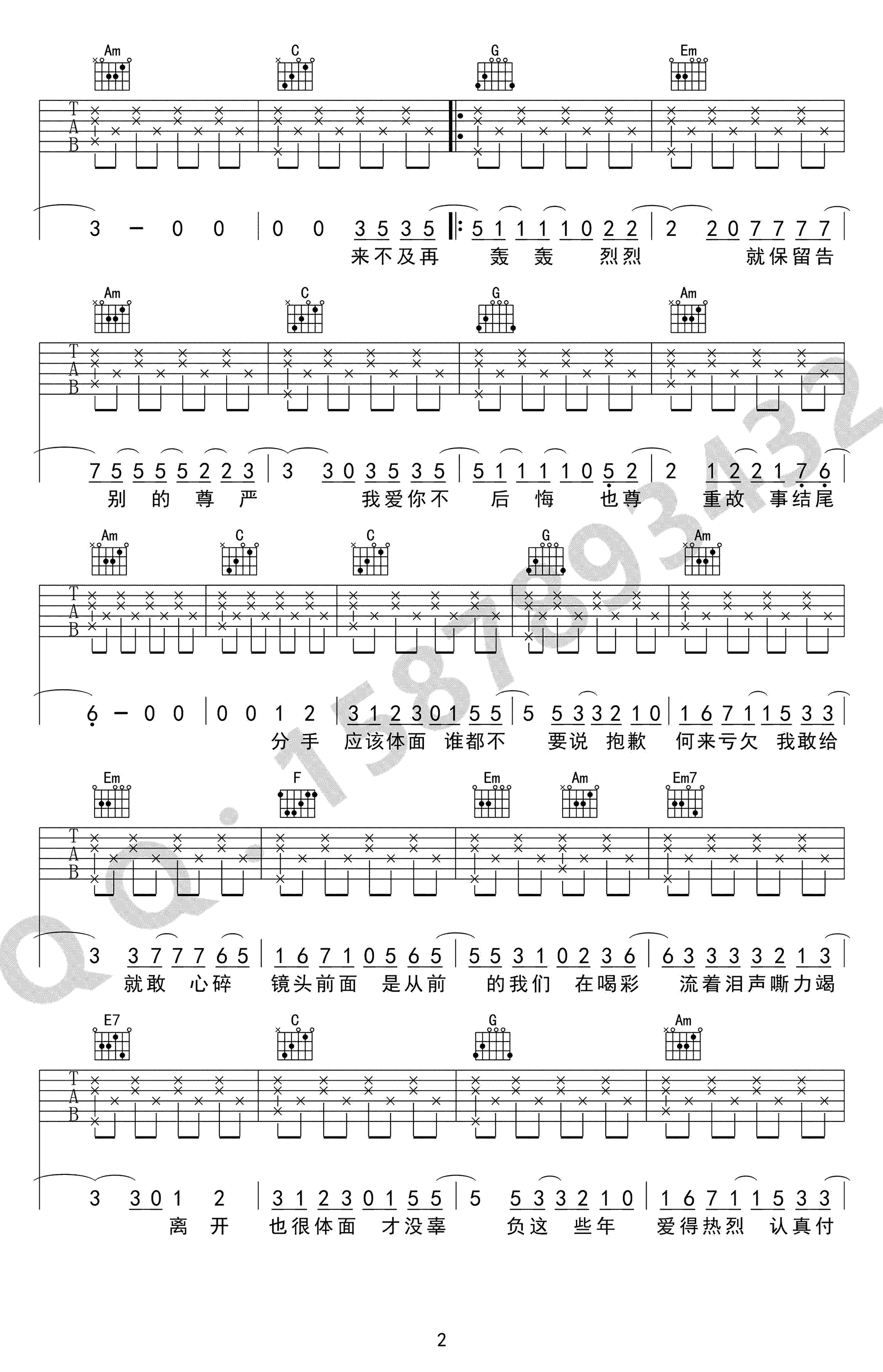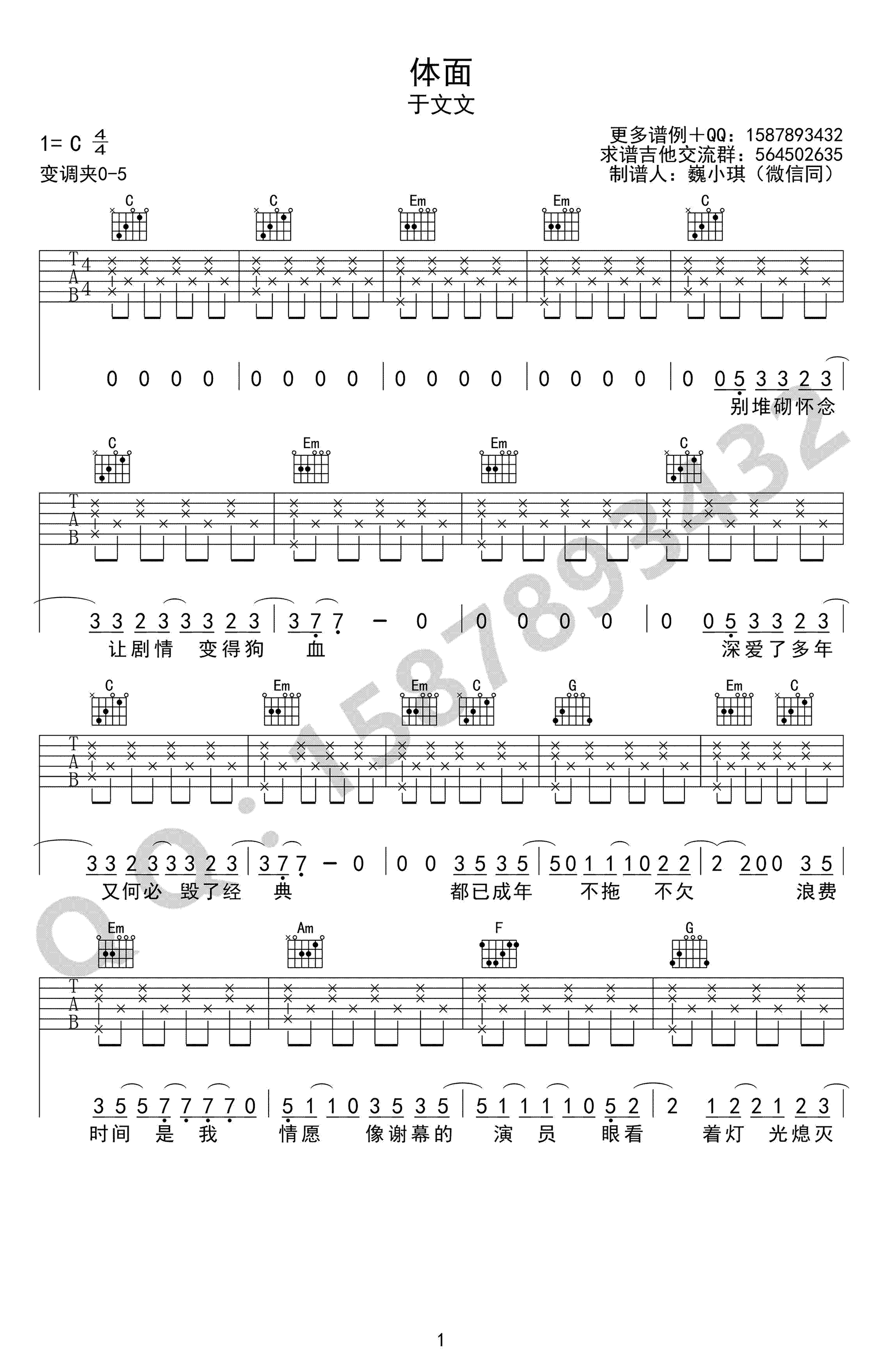 - 体面吉他谱 于文文 吉他弹唱谱 电影前任3插曲
