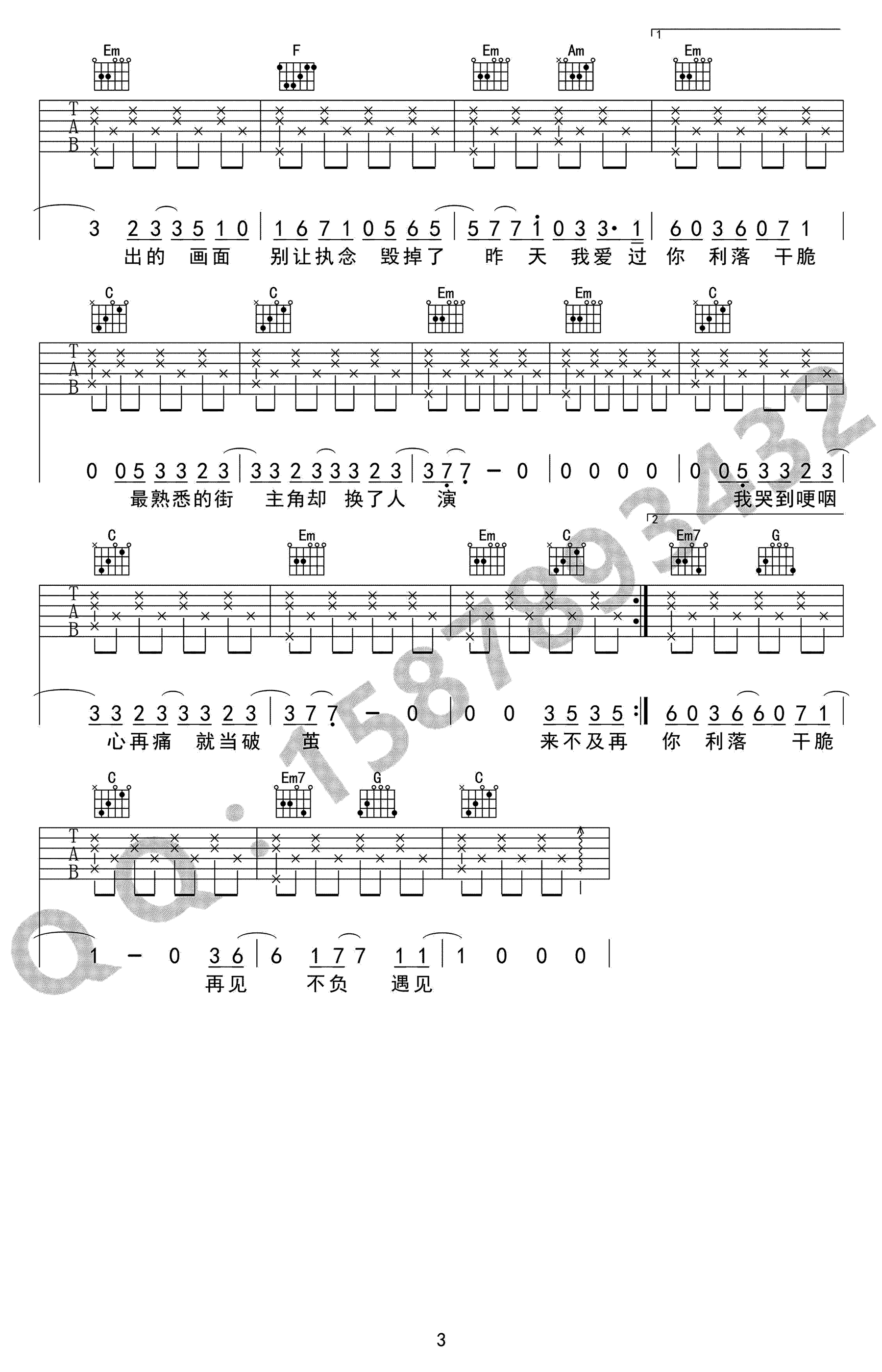 - 说散就散吉他谱_袁维娅《前任3》主题曲_吉他弹唱视频