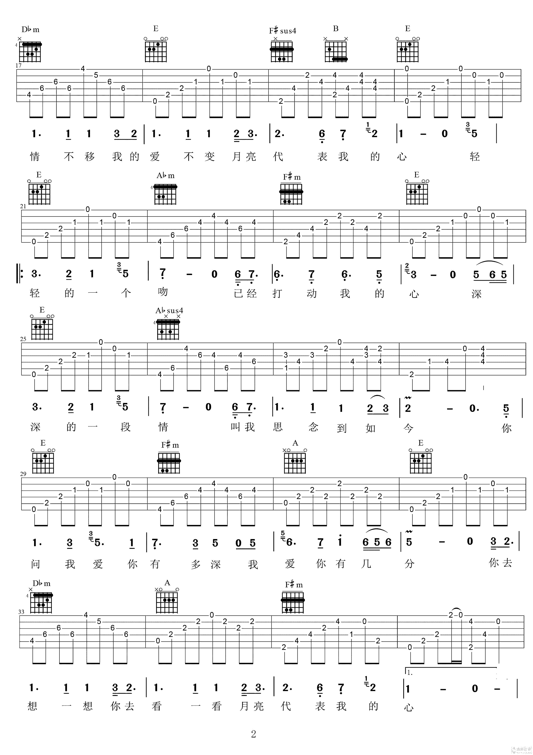 月亮代表我的心 歌词 词:孙仪 曲:翁清溪 轻轻的一个吻 已经打动我的心 深深的一段情 教我思念到如今 你问我爱你有多深 我爱你有几分 我的情也真 我的爱也真 月亮代表我的心 你问我爱你有多深 我爱你有几分 我的情不移 我的爱不变 月亮代表我的心 轻轻的一个吻 已经打动我的心 深深的一段情 教我思念到如今 你问我爱你有多深 我爱你有几分 你去想一想 你去看一看 月亮代表我的心 轻轻的一个吻 已经打动我的心 深深的一段情 教我思念到如今 你问我爱你有多深 我爱你有几分 你去想一想 你去看一看 月亮代表我的心 你去想一想 你去看一看 月亮代表我的心