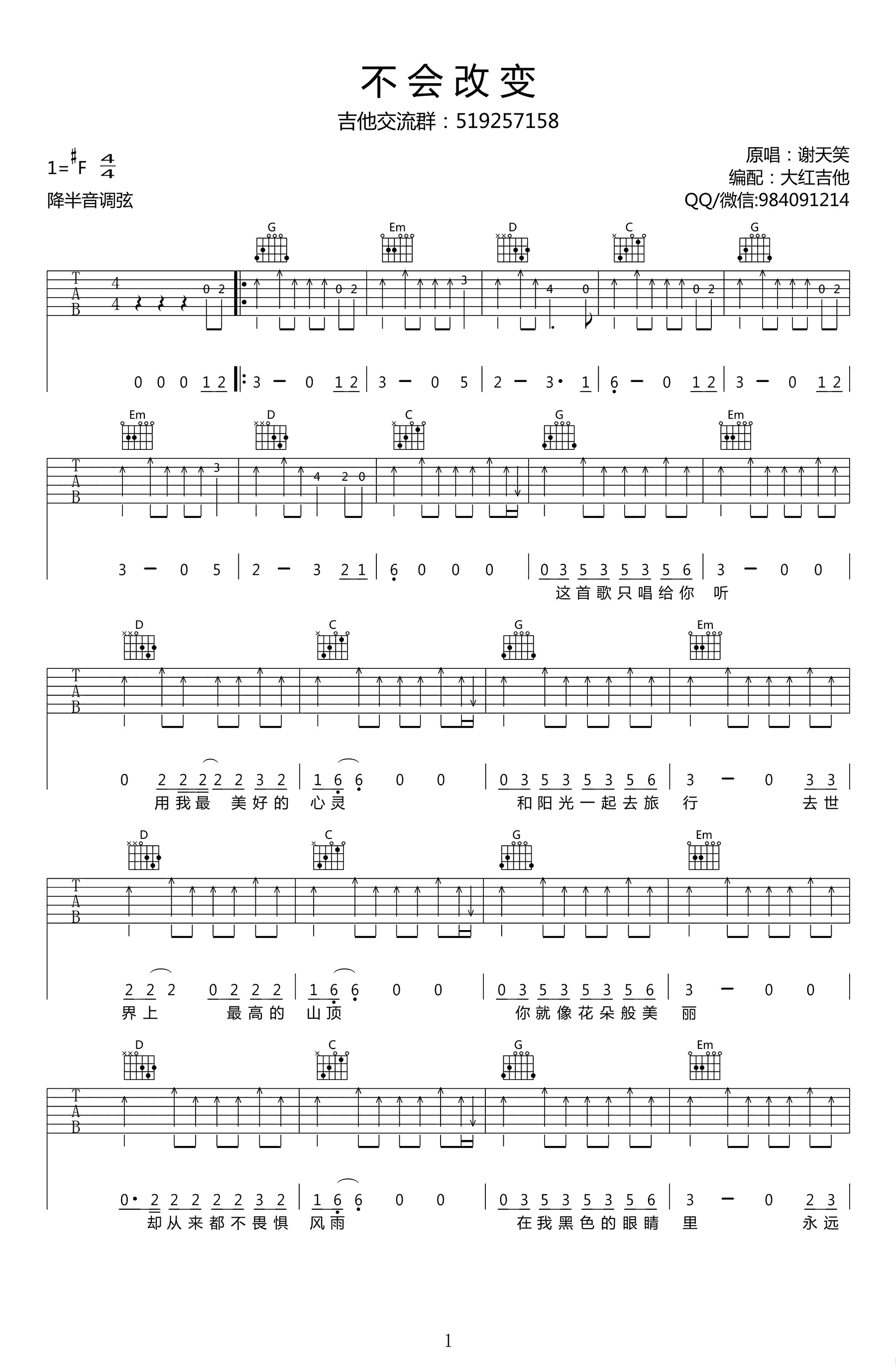 不会改变 歌词 作词:谢天笑 作曲:谢天笑 这首歌只唱给你听 用我最美好的心灵 和阳光一起去旅行 去世界上最高的山顶 你就像花朵般美丽 却从来都不畏惧风雨 在我黑色的眼睛里 永远都会有你的身影 永远都会有你的身影 每当天空阴雨绵绵 我总会想起那段时间 不知道多少个夜未眠 只因为你的出现 就算生活能再来一遍 就算世界再回到从前 我知道我的选择 也不会改变。 我的选择 也不会改变 你就像花朵般美丽 却从来都不畏惧风雨 在我黑色的眼睛里 永远都会有你的身影 永远都会有你的身影 每当天空阴雨绵绵 我总会想起那段时间 不知道多少个夜未眠 只因为你的出现 就算生活能再来一遍 就算世界再回到从前 我知道我的选择 也不会改变。 我的选择 也不会改变 我的选择 不会改变