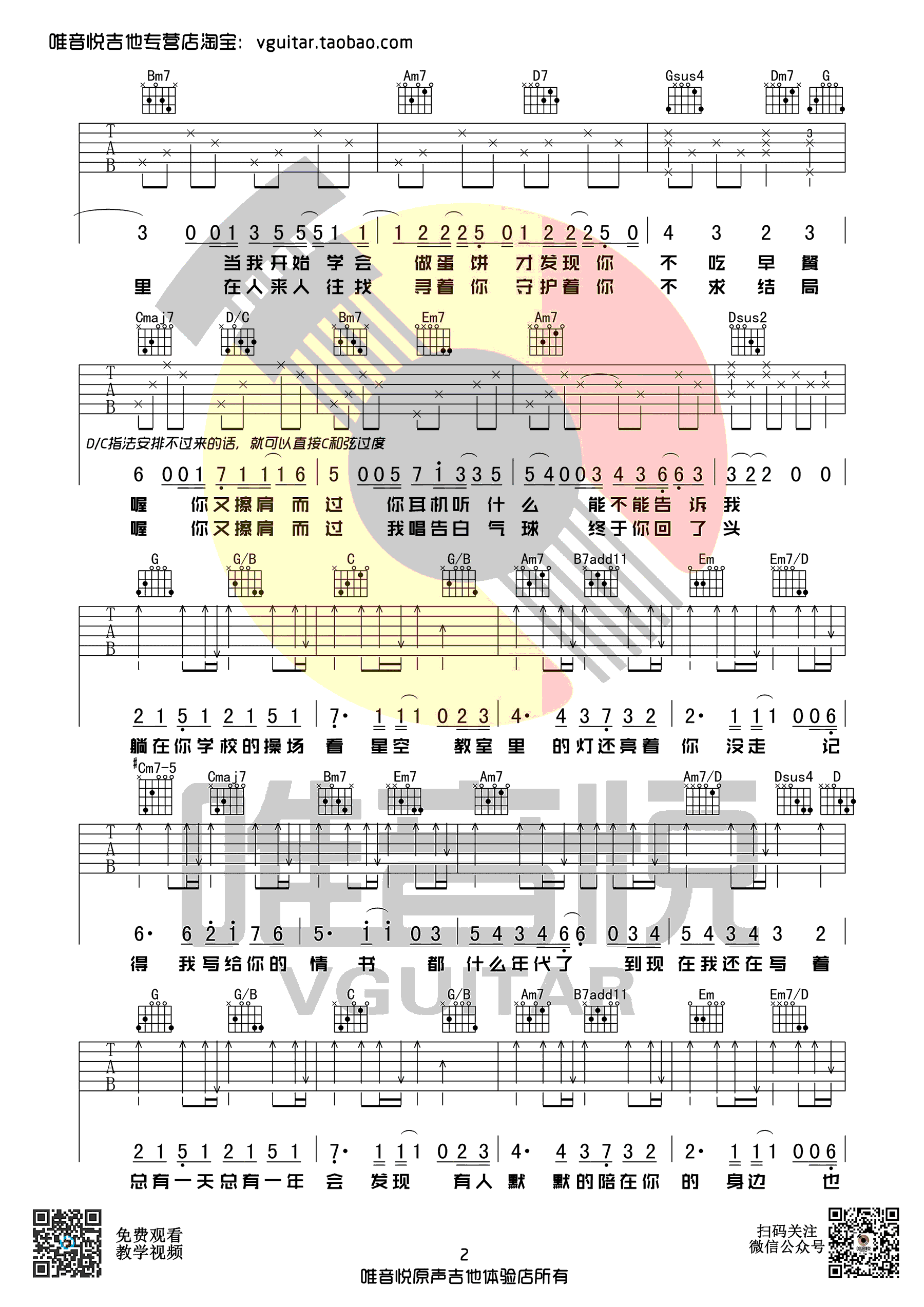 - 告白气球吉他谱 周杰伦 C调高清弹唱谱 吉他教学视频