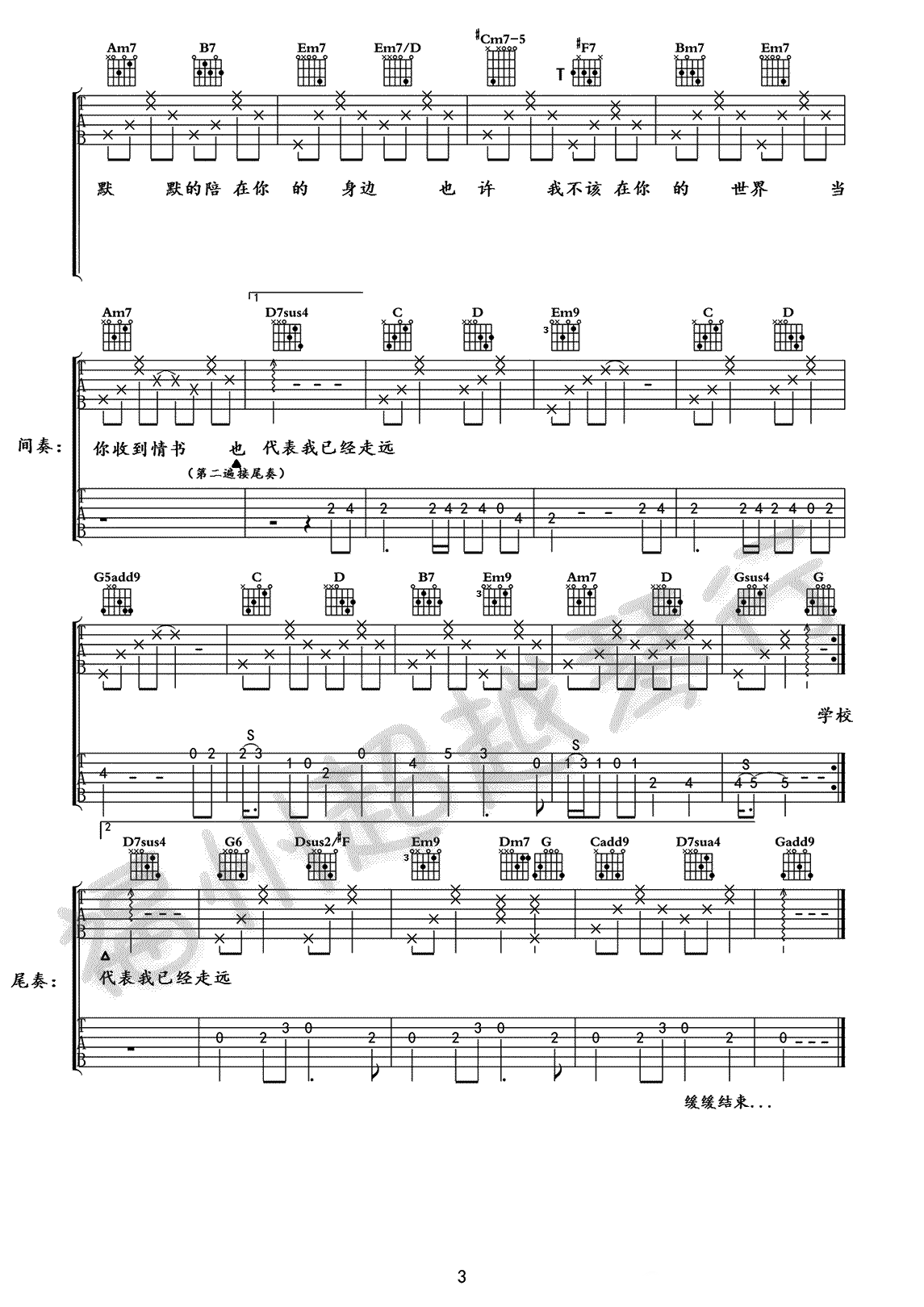 - 周杰伦 等你下课吉他谱 G调弹唱谱 高清六线谱