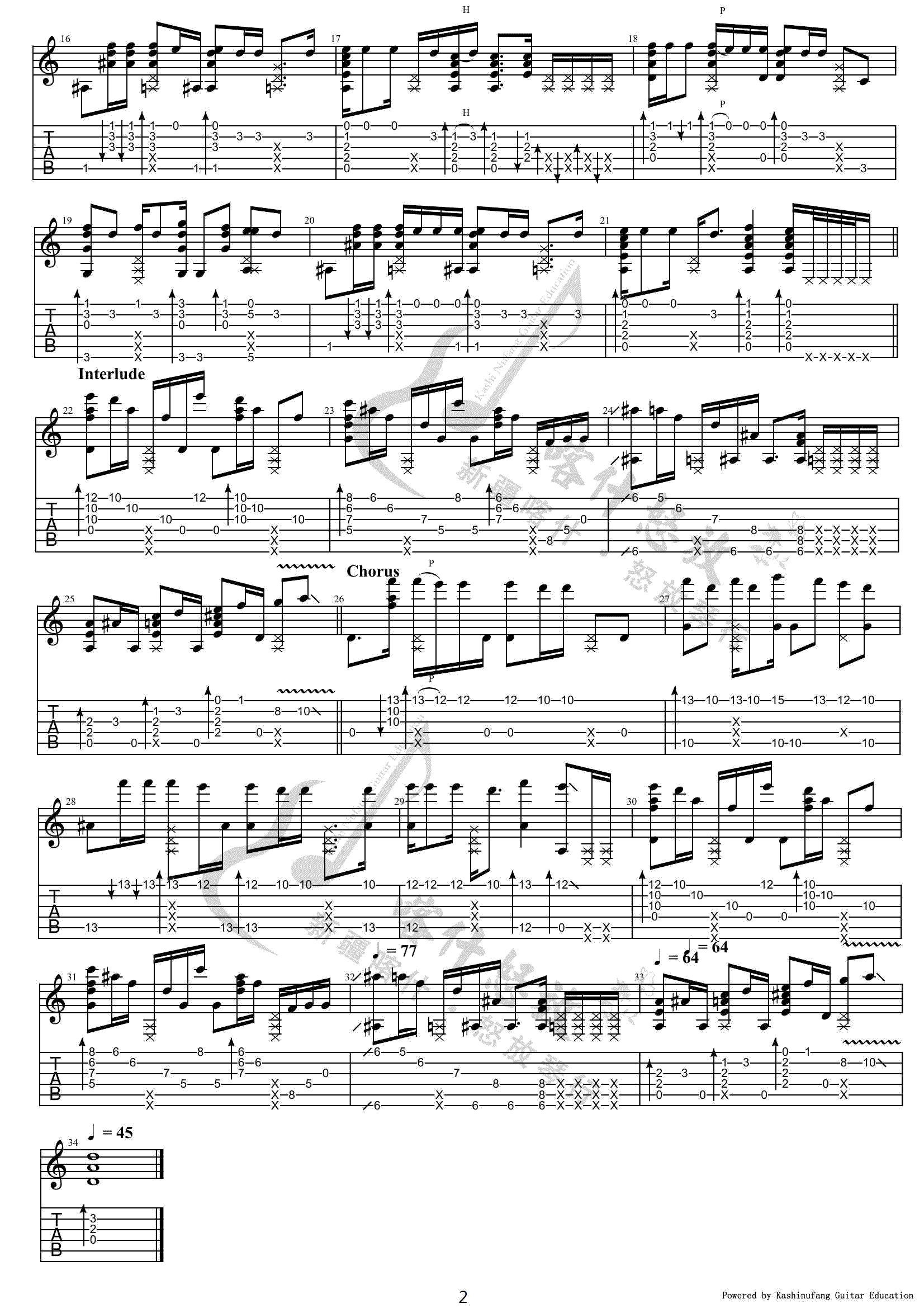- Sunflower指弹谱 孙培博《太阳花》吉他独奏谱 完整版