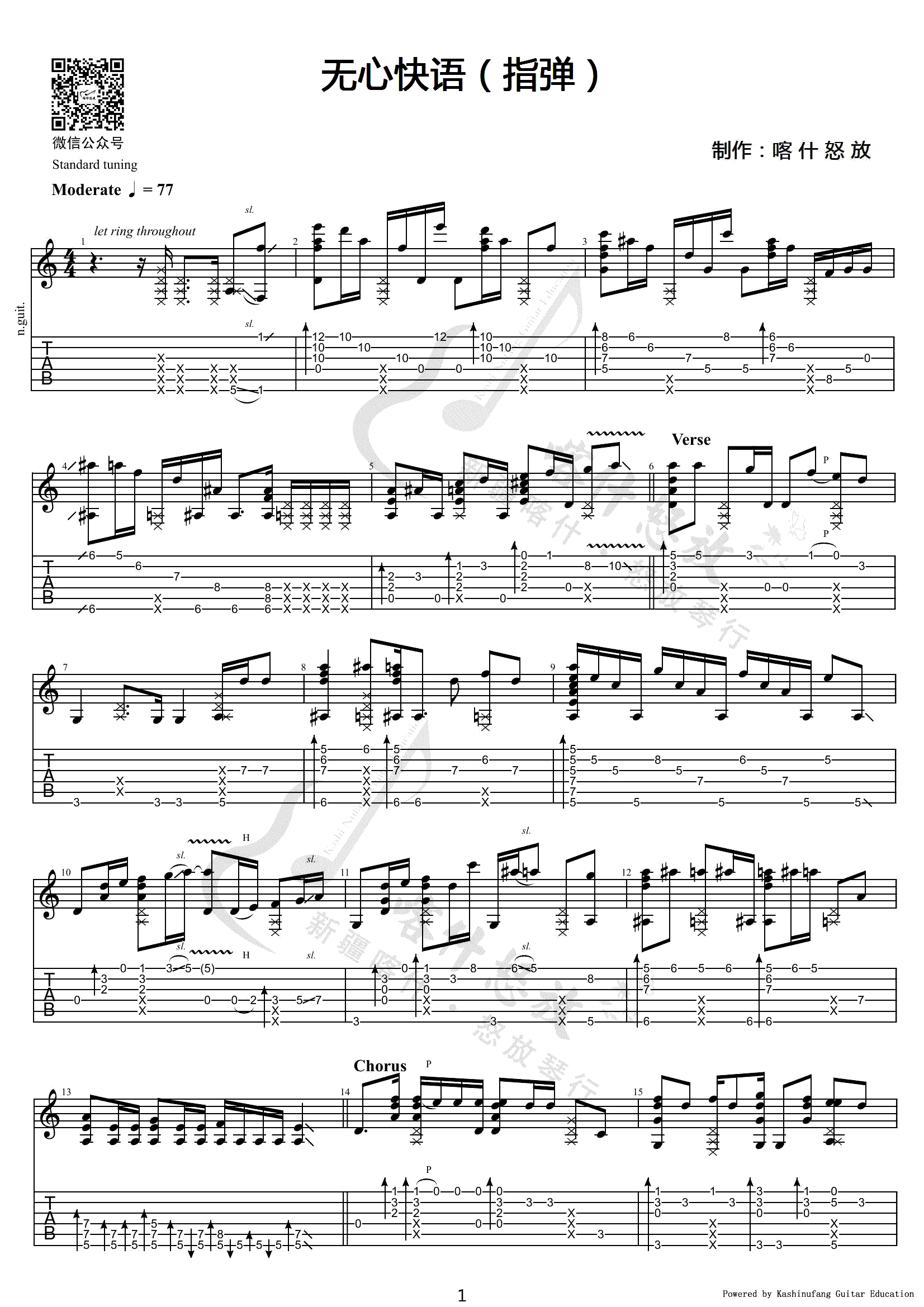 - 凉凉指弹谱 十九画生指弹改编 凉凉吉他独奏视频