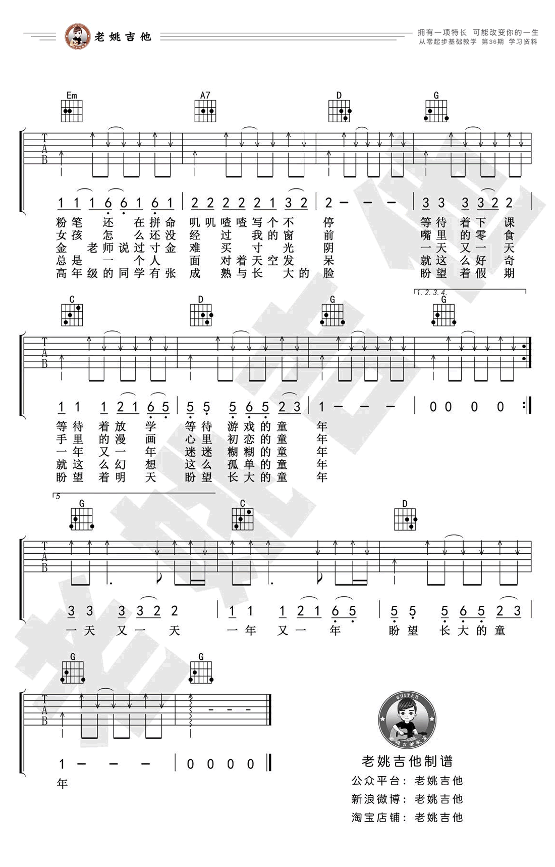 - 童年吉他谱 罗大佑 G调图片谱 吉他弹唱视频示范