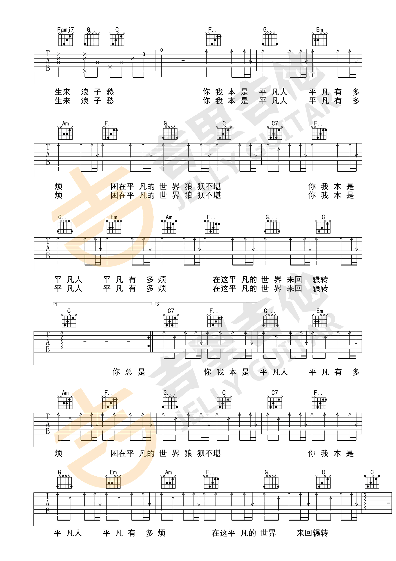 - 往后余生吉他谱 王贰浪版本 C调原版 高清图片谱