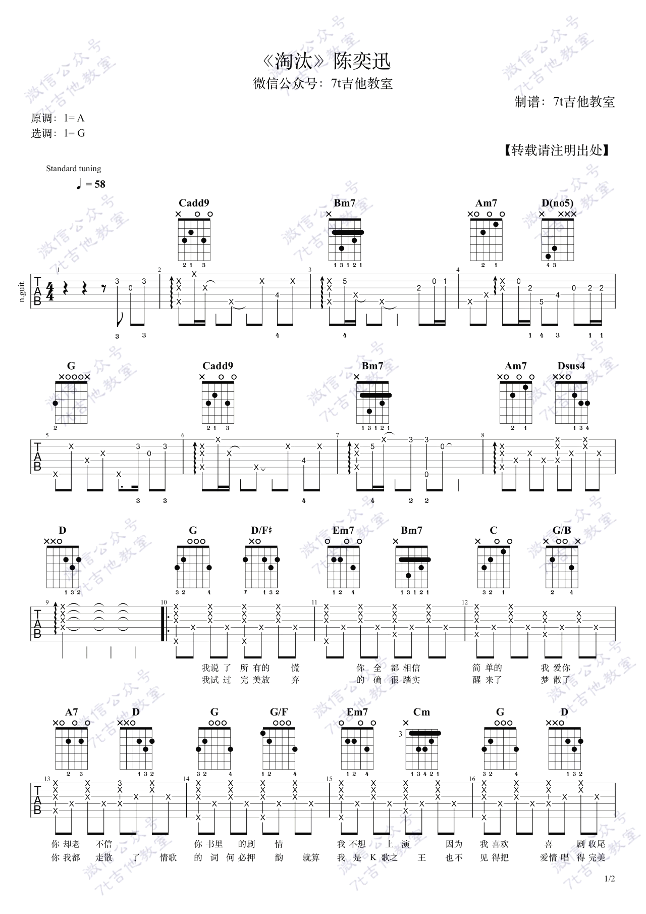 - 淘汰吉他谱 陈奕迅 G调弹唱谱 《淘汰》吉他教学视频