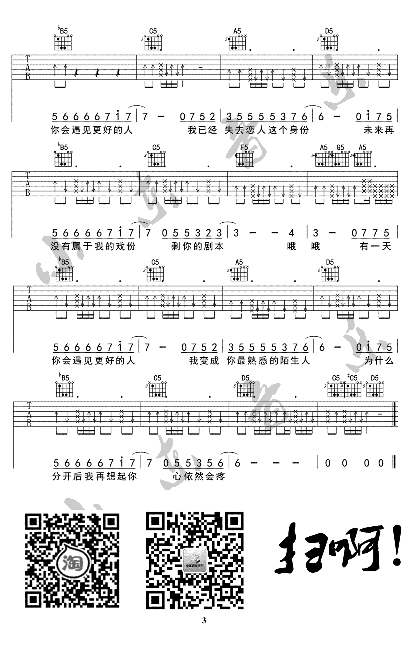 - 离开我你快乐吗吉他谱 虎二 C调弹唱谱 高清版