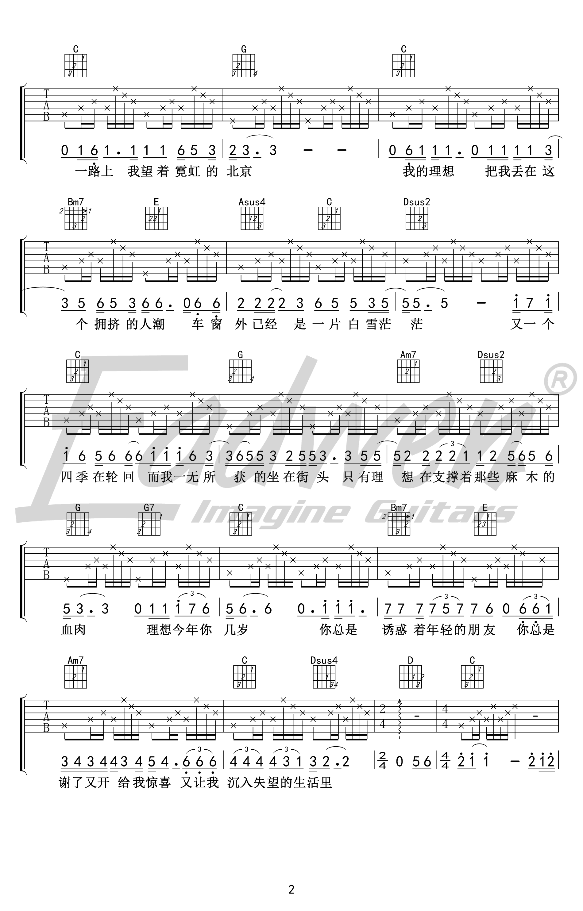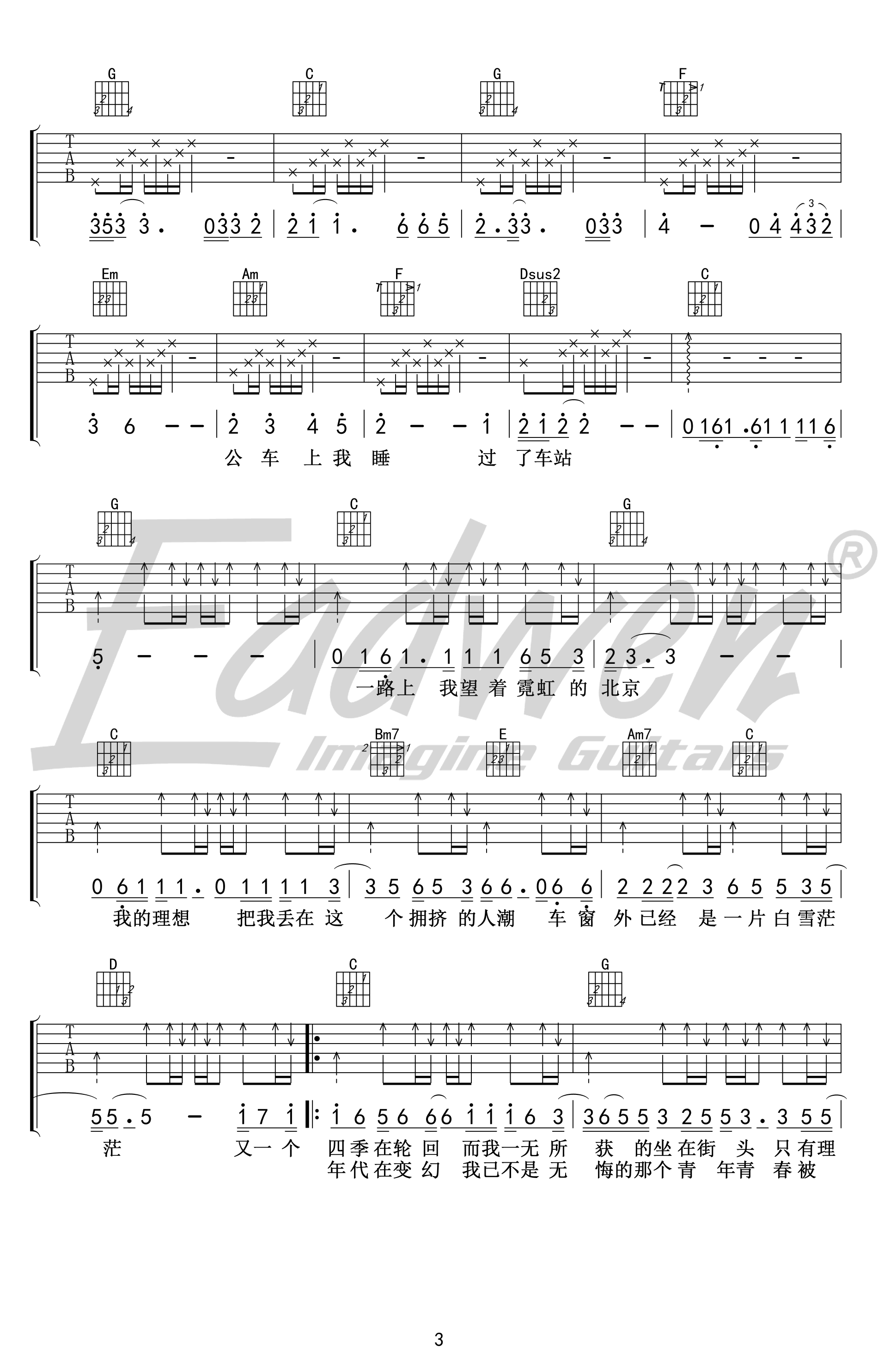- 旅行吉他谱 C调弹唱谱 许巍《旅行》六线谱高清