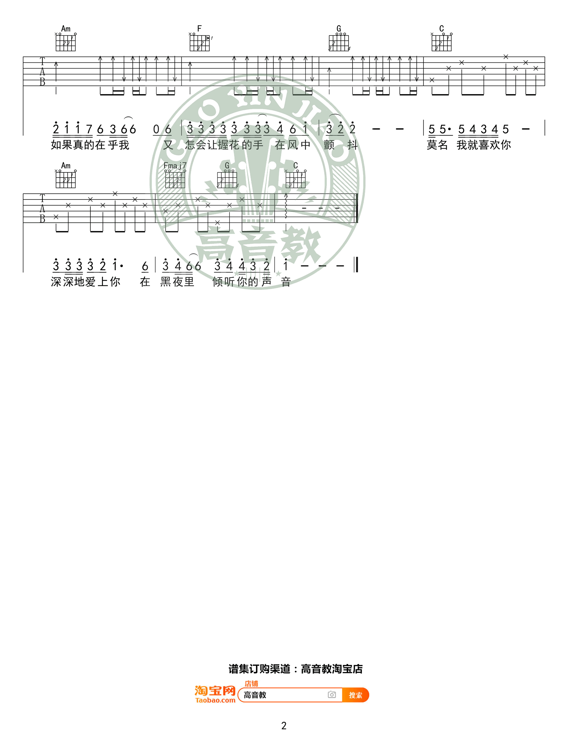 - 陈芳语《爱你》吉他谱 示范视频 图片谱高清版