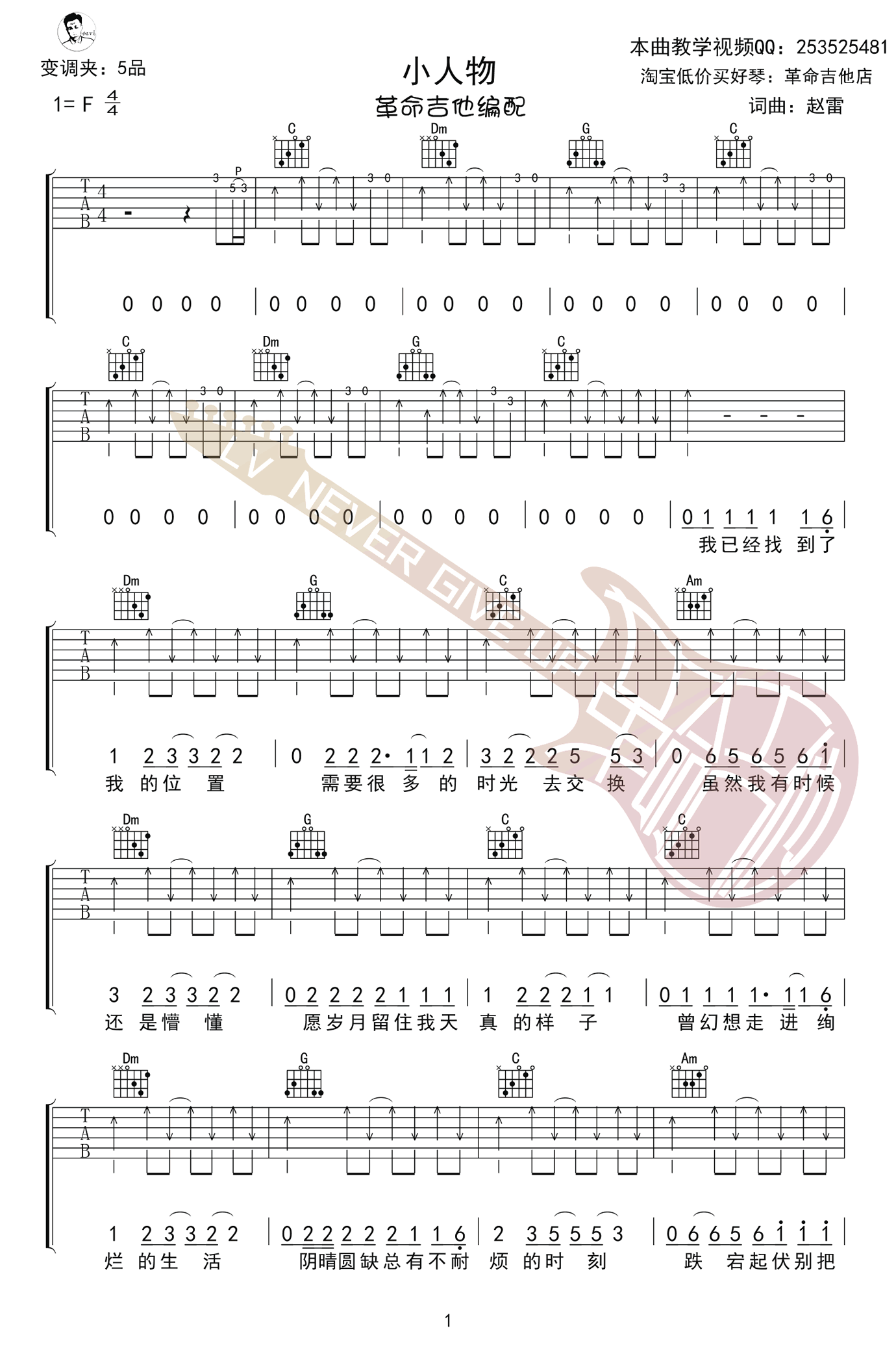 - 成都指弹谱 赵雷 C调独奏谱 《成都》指弹教学视频