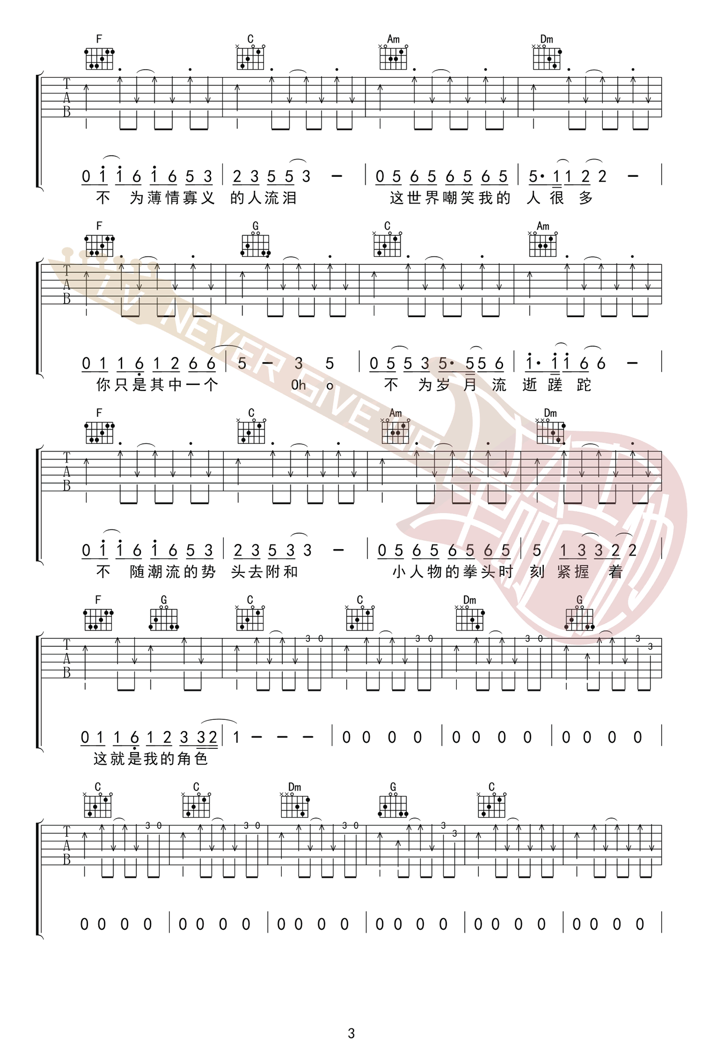 - 追光者吉他谱 C调弹唱谱 岑宁儿《追光者》六线谱