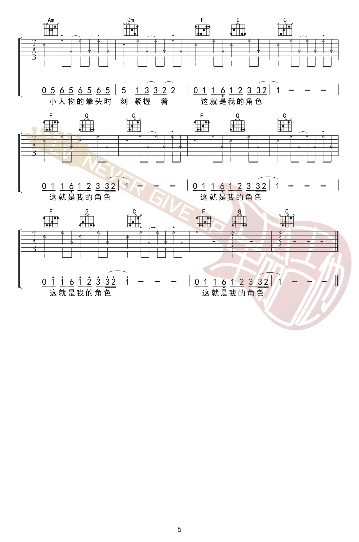 - 沙漠骆驼吉他谱 展展与罗罗 C调弹唱谱 高清六线谱