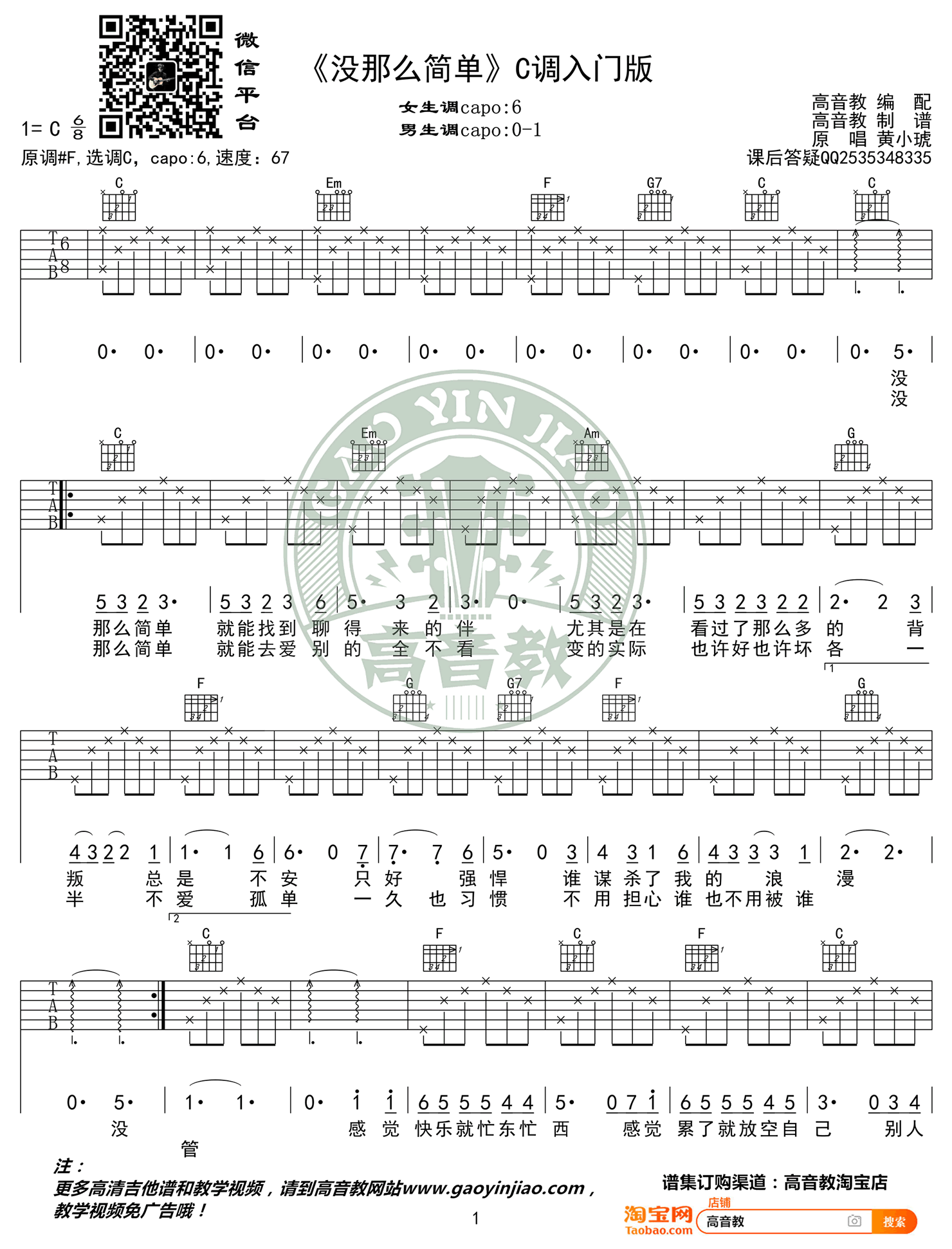 - 吴亦凡《从此以后》吉他谱 电影《夏有乔木雅望