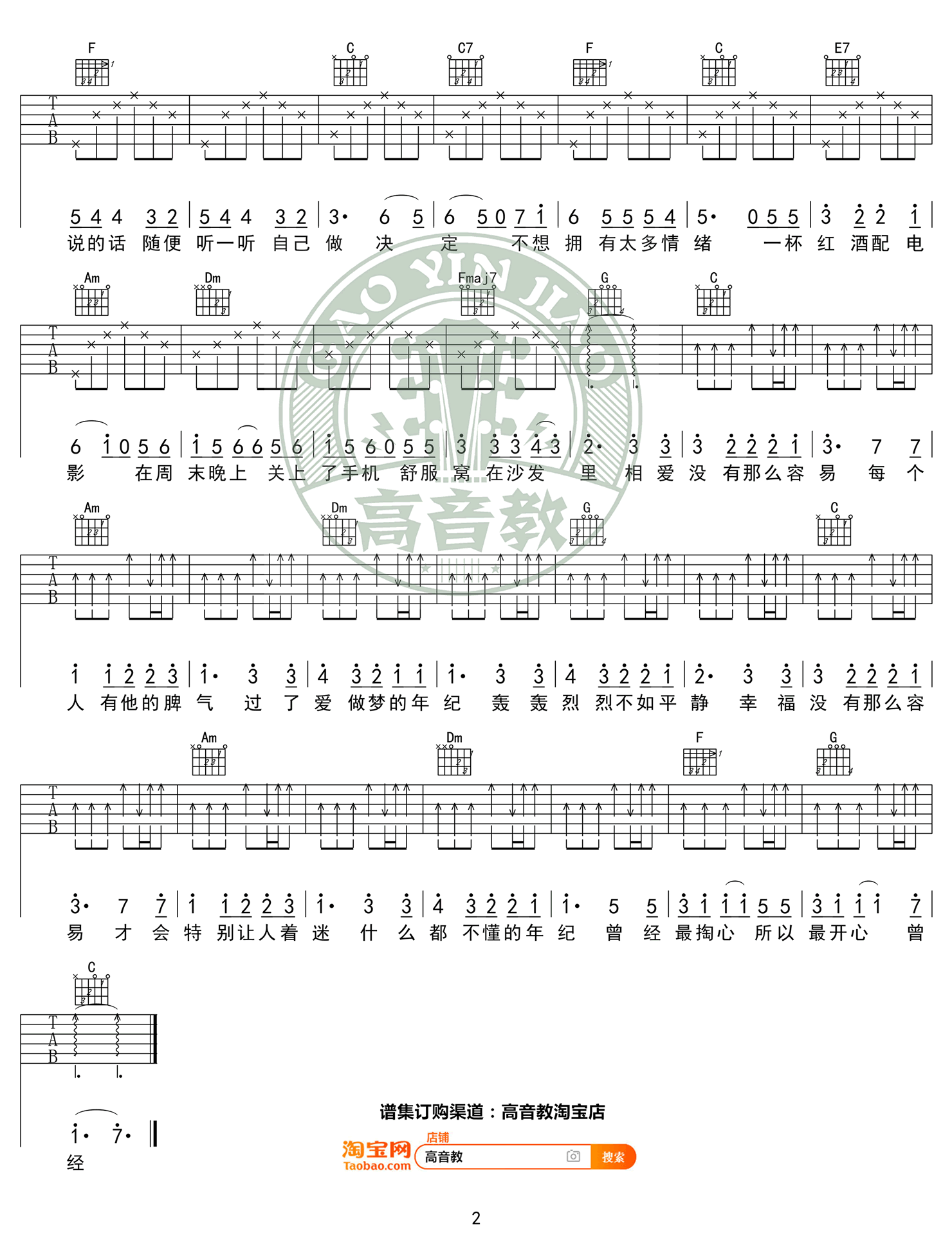 - 陈芳语《爱你》吉他谱 示范视频 图片谱高清版