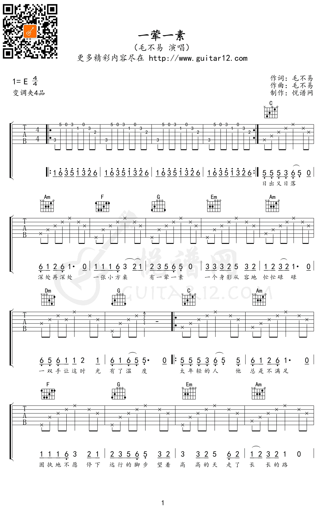 - 《不染》吉他谱 毛不易 G调完整版 弹唱图片谱