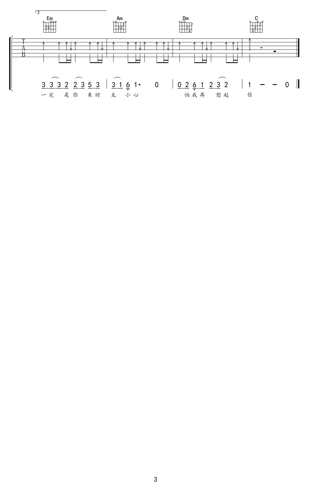 - 你知道我在等你吗吉他谱 C调入门版 张洪量 弹唱谱