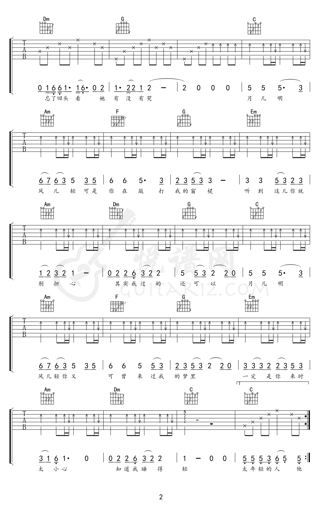 - 安和桥吉他谱 包师语女生版 C调简单弹唱谱