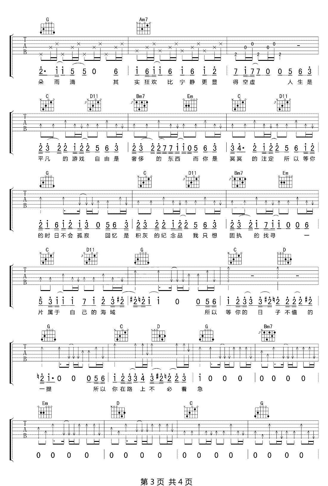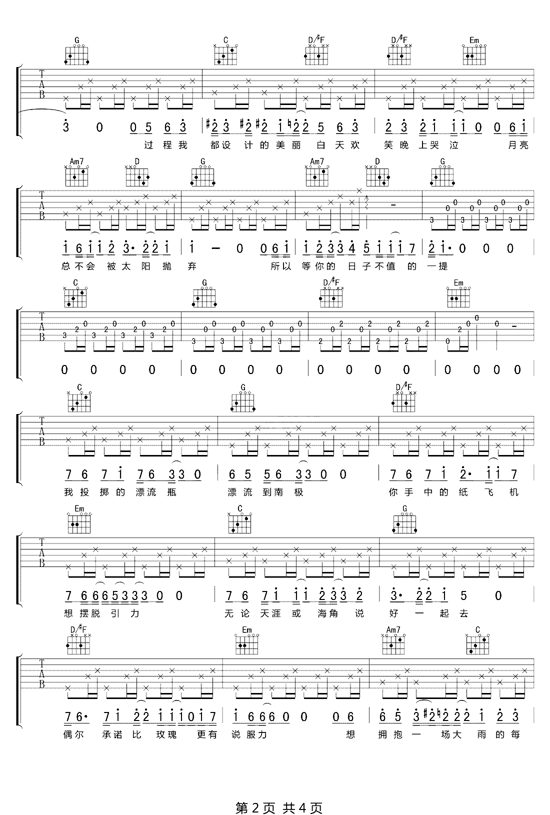 - 一百万个可能吉他谱 虎二 G调 吉他弹唱六线谱