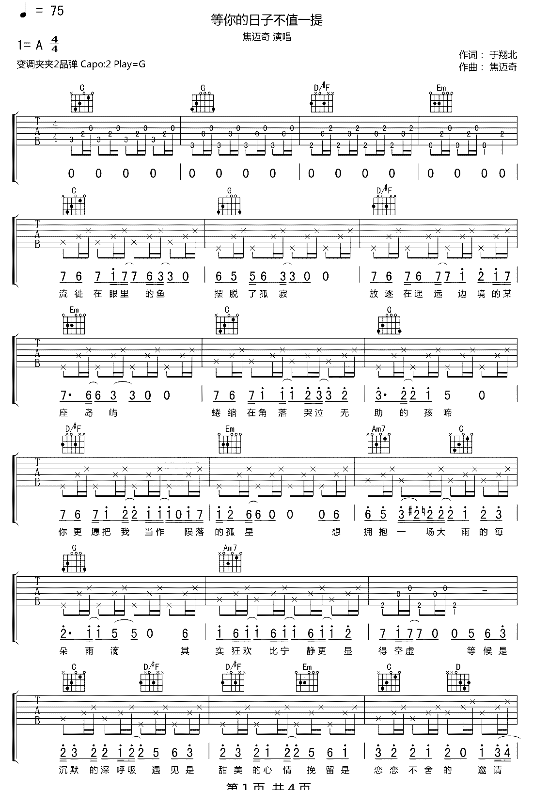 - 安和桥吉他谱 包师语女生版 C调简单弹唱谱