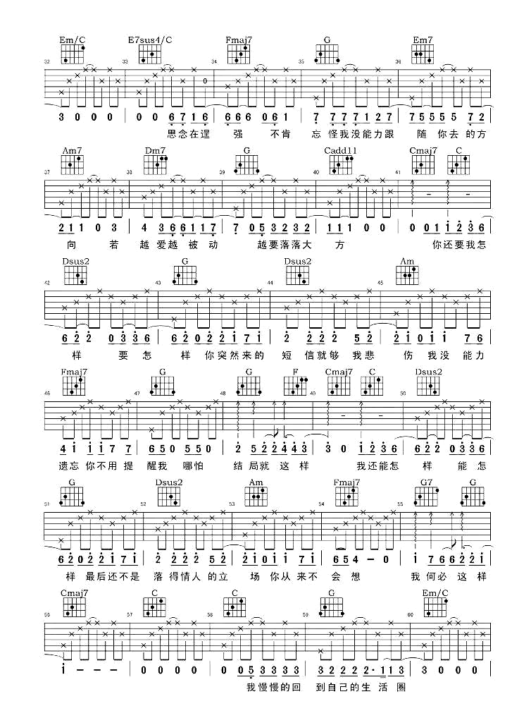 - 薛之谦《方圆几里》吉他谱_C调弹唱谱