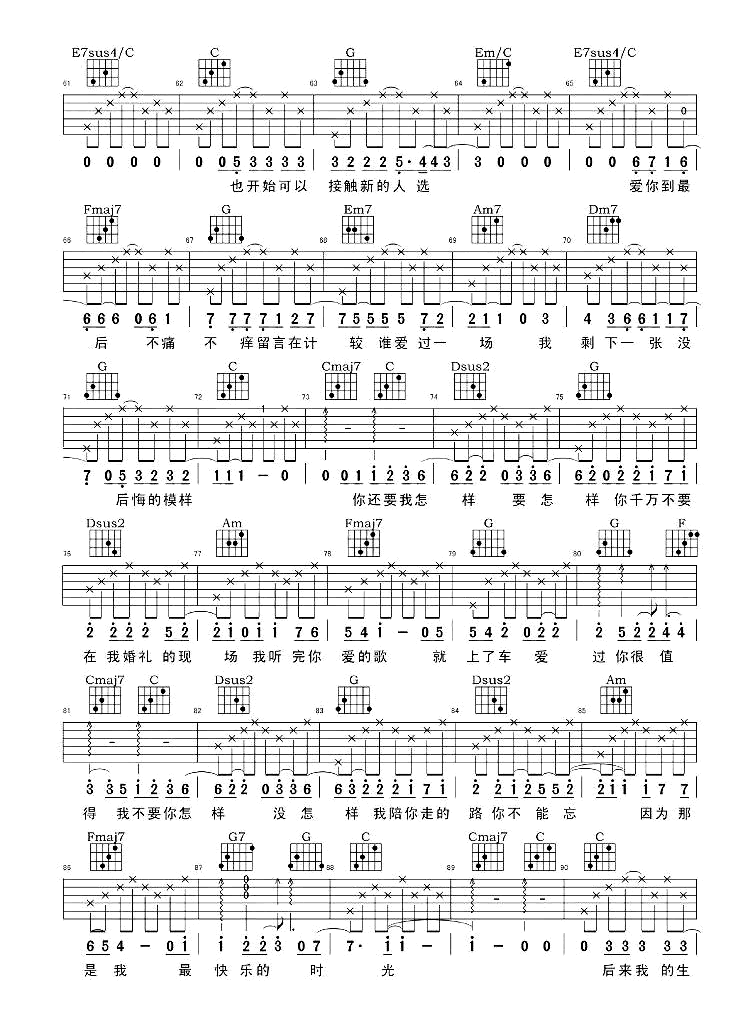 - 告白气球吉他谱_周杰伦《告白气球》六线谱