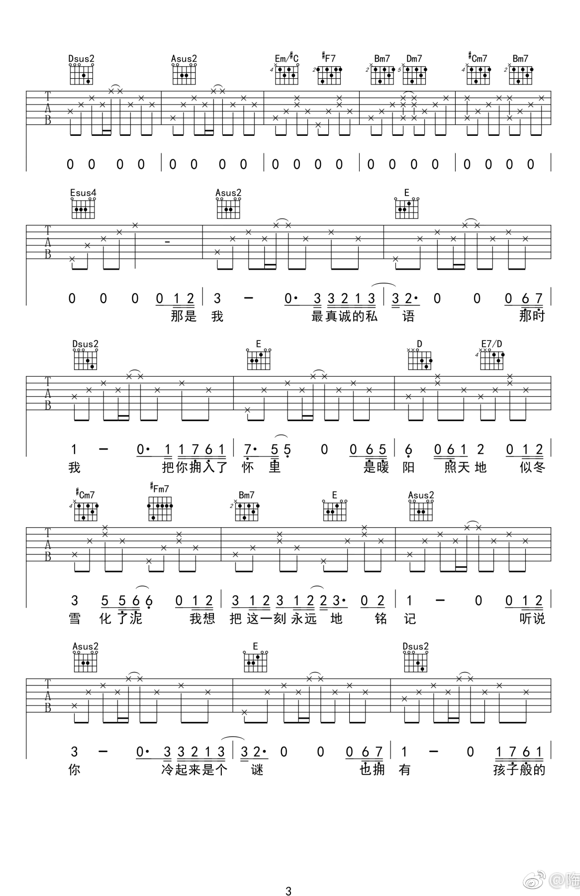 - 丛铭君《听说》吉他谱 C调六线谱 教学视频
