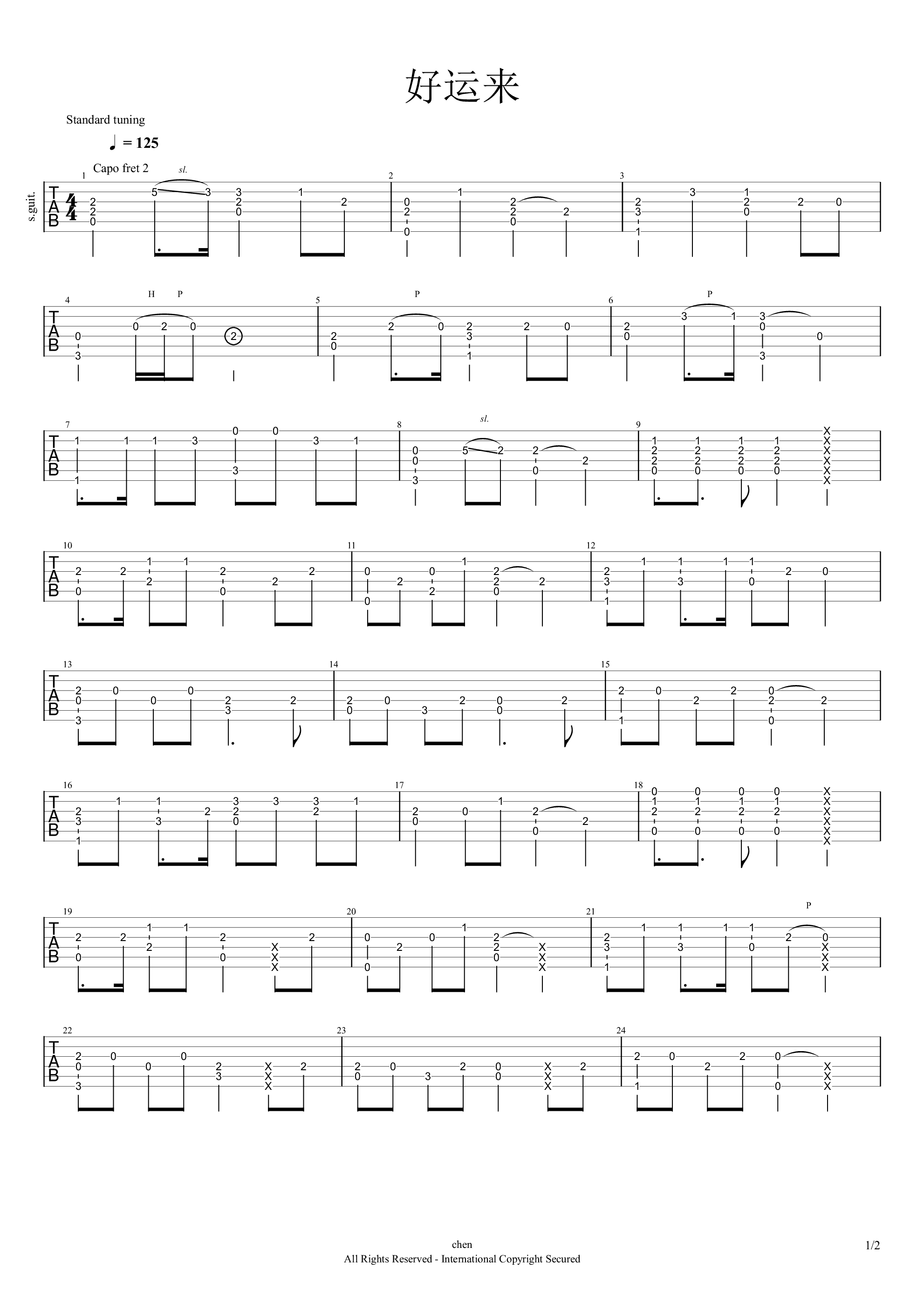 - 好嗨哟指弹谱 抖音神曲 吉他独奏谱 吉他演示视频