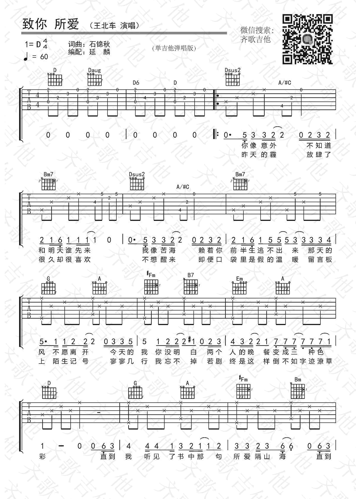 - 我看着你的时候吉他谱 李荣浩 D调弹唱谱 高清六