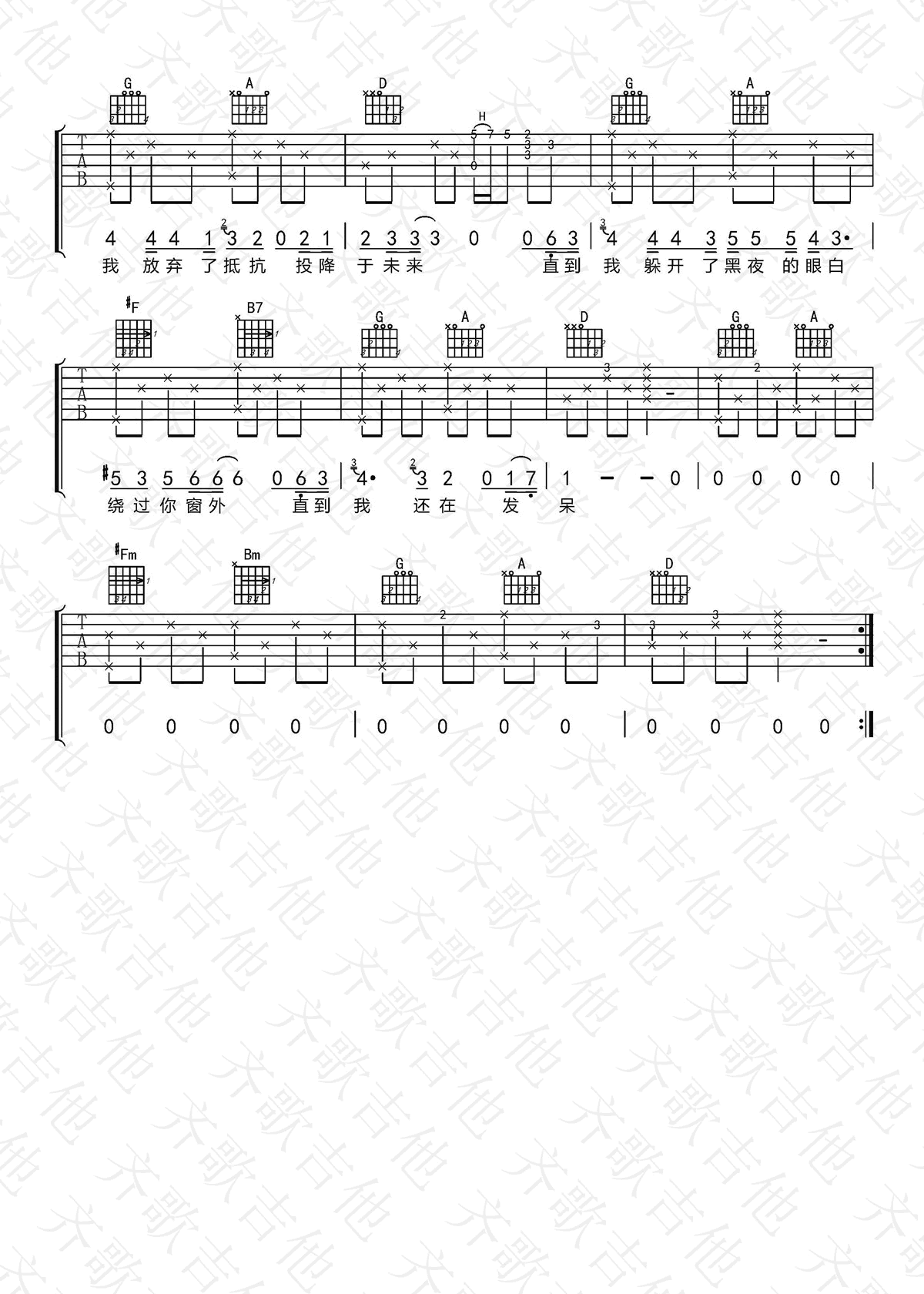 - 摩羯座吉他谱 陶辰宇 弹唱六线谱 高清版