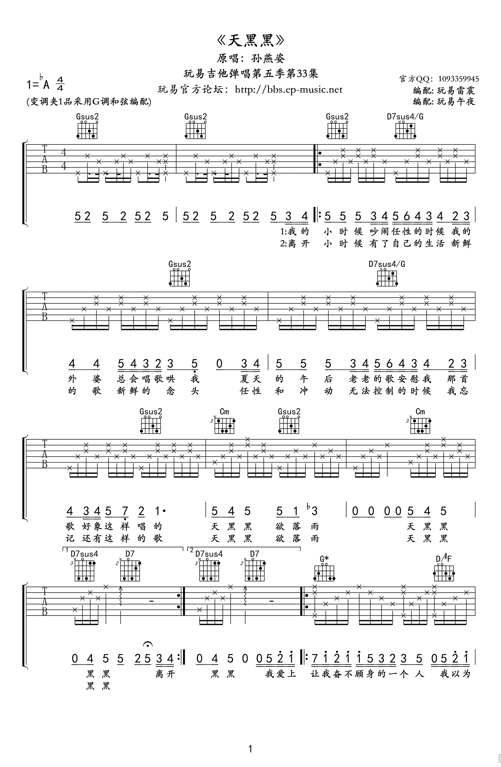 - 天黑黑吉他谱_孙燕姿_G调六线谱_高清版