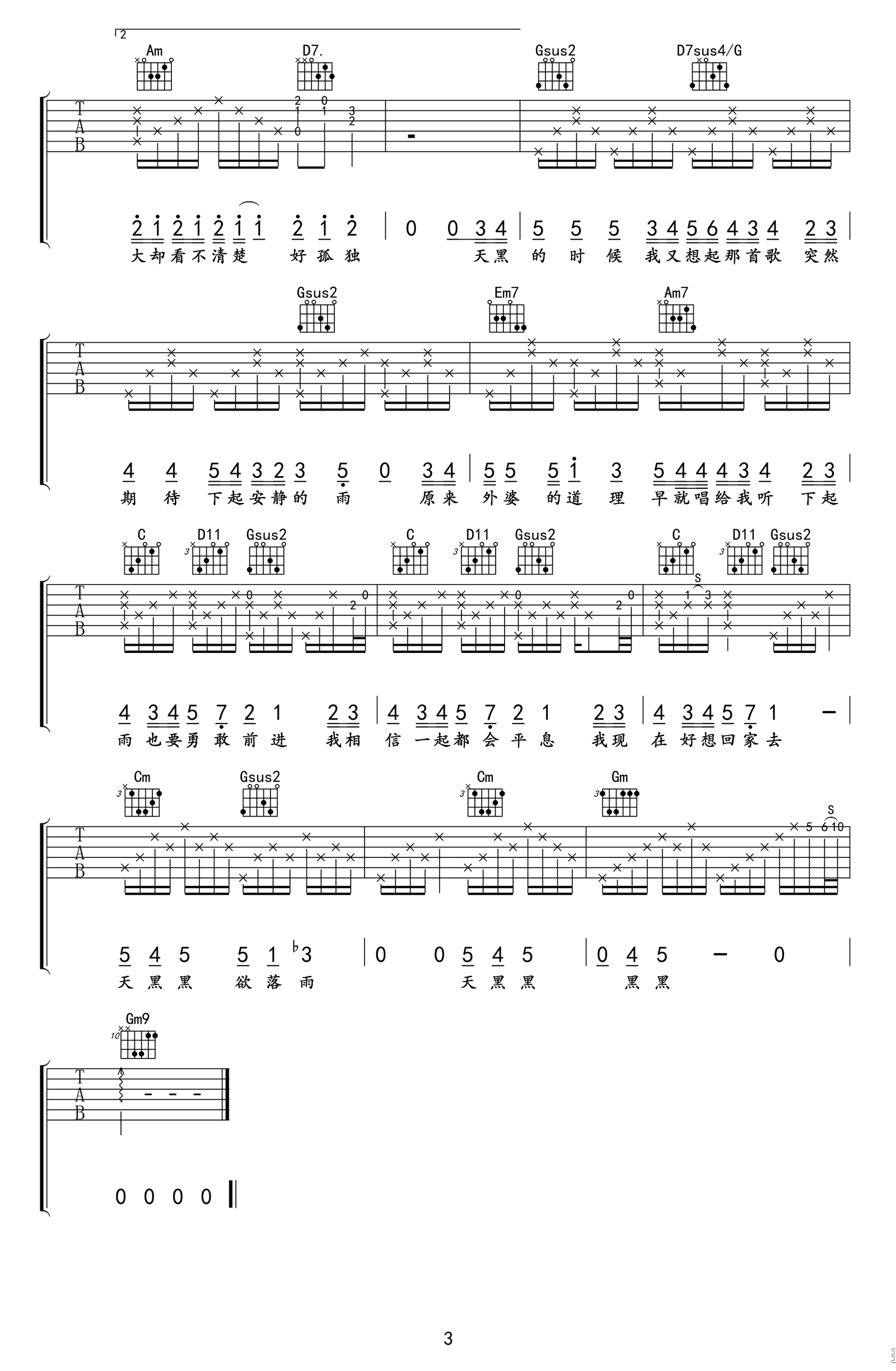 - 天黑黑吉他谱 孙燕姿 G调六线谱 高清弹唱谱