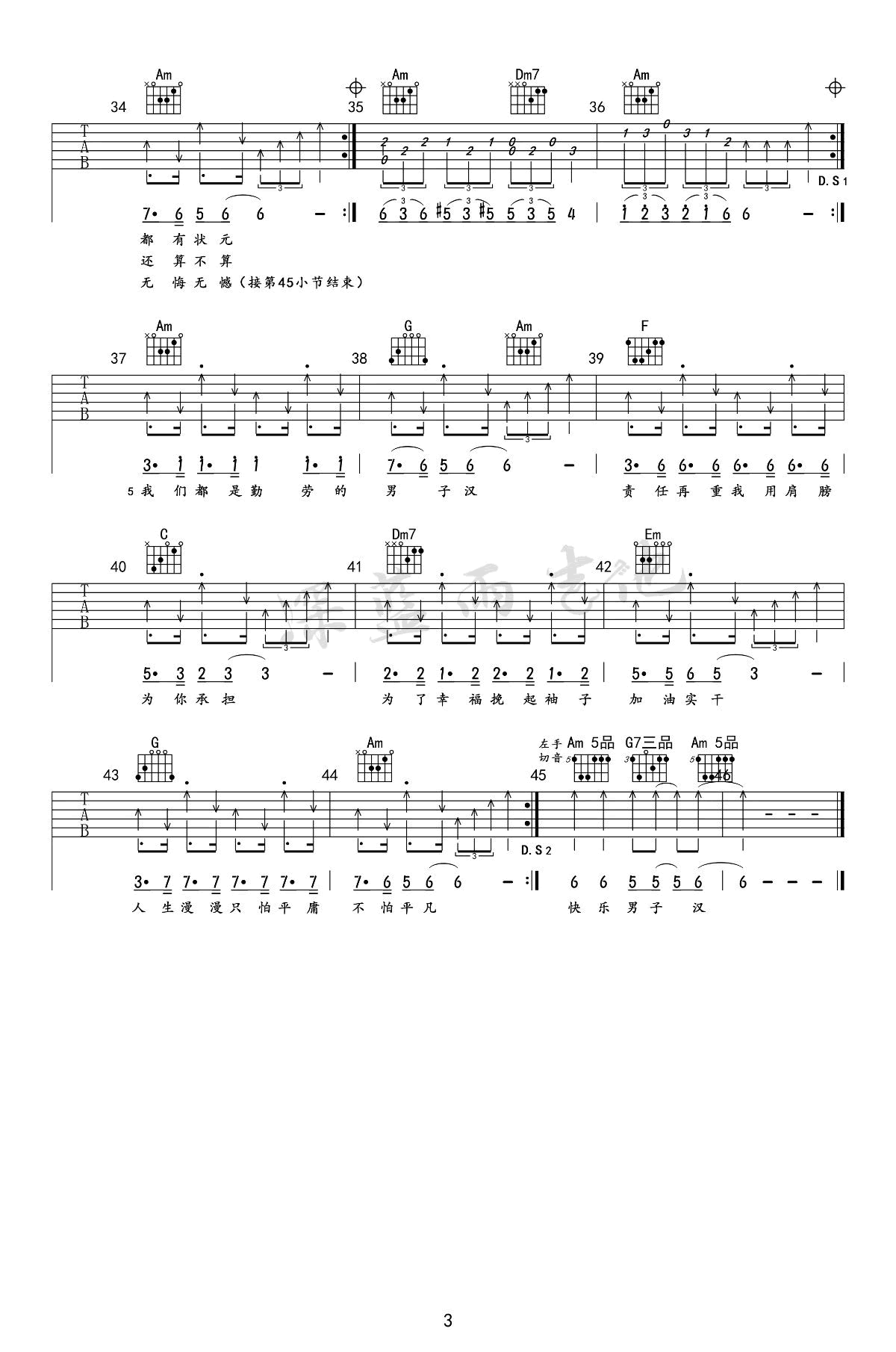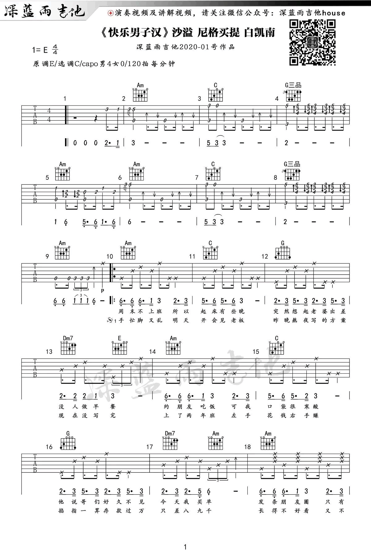 - 快乐男子汉吉他谱_沙溢尼格买提白凯南_吉他弹唱演示