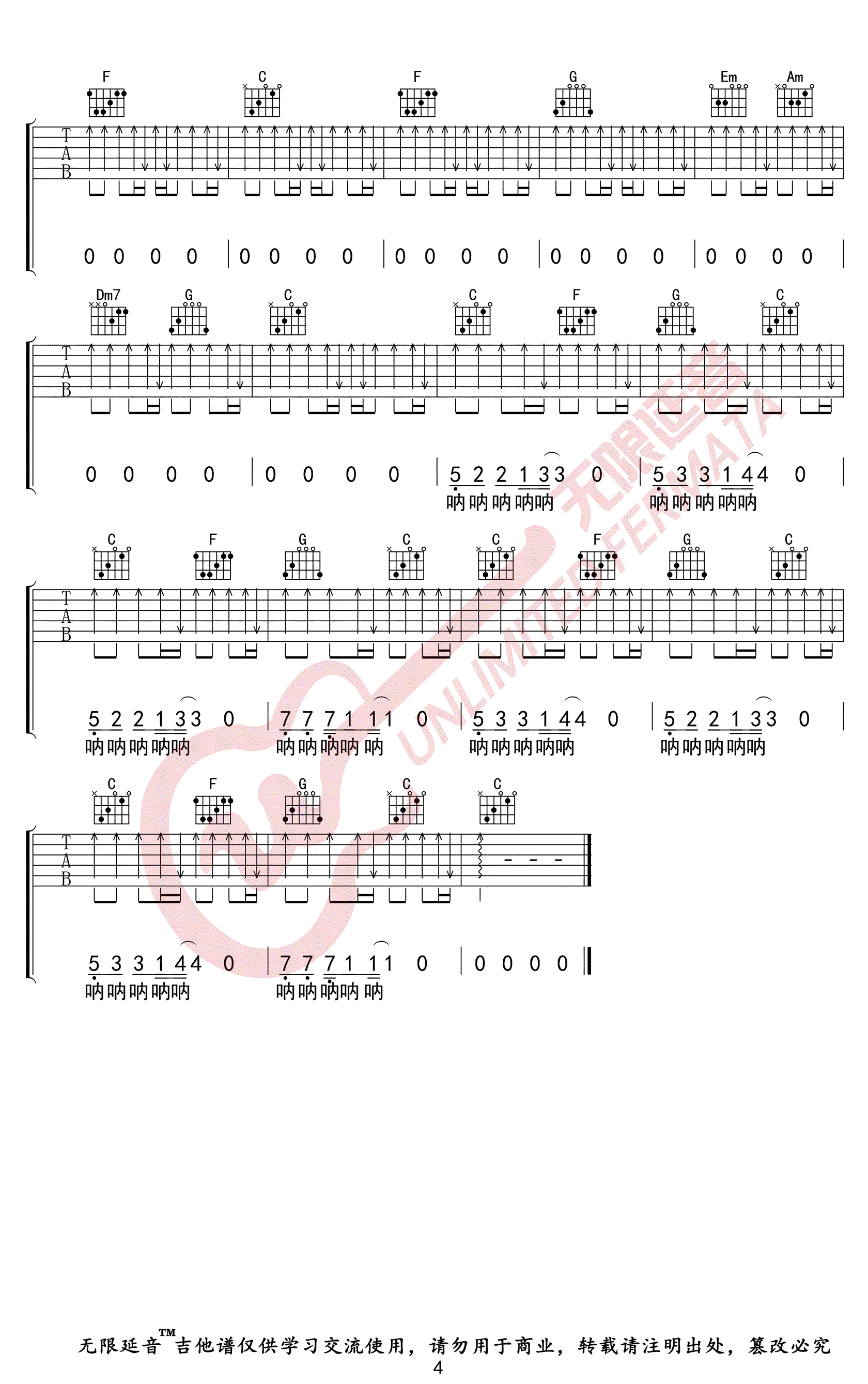 - 桥边姑娘吉他谱_海伦_C调入门版+原版_六线谱