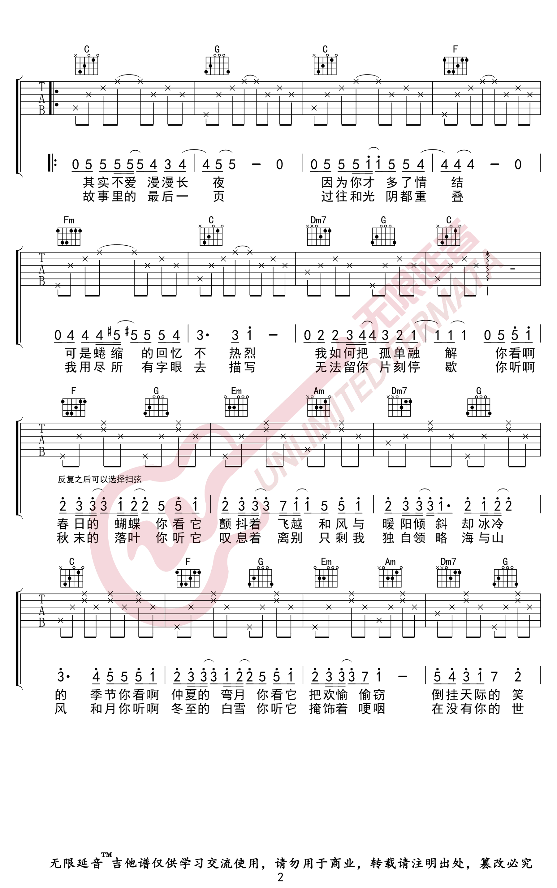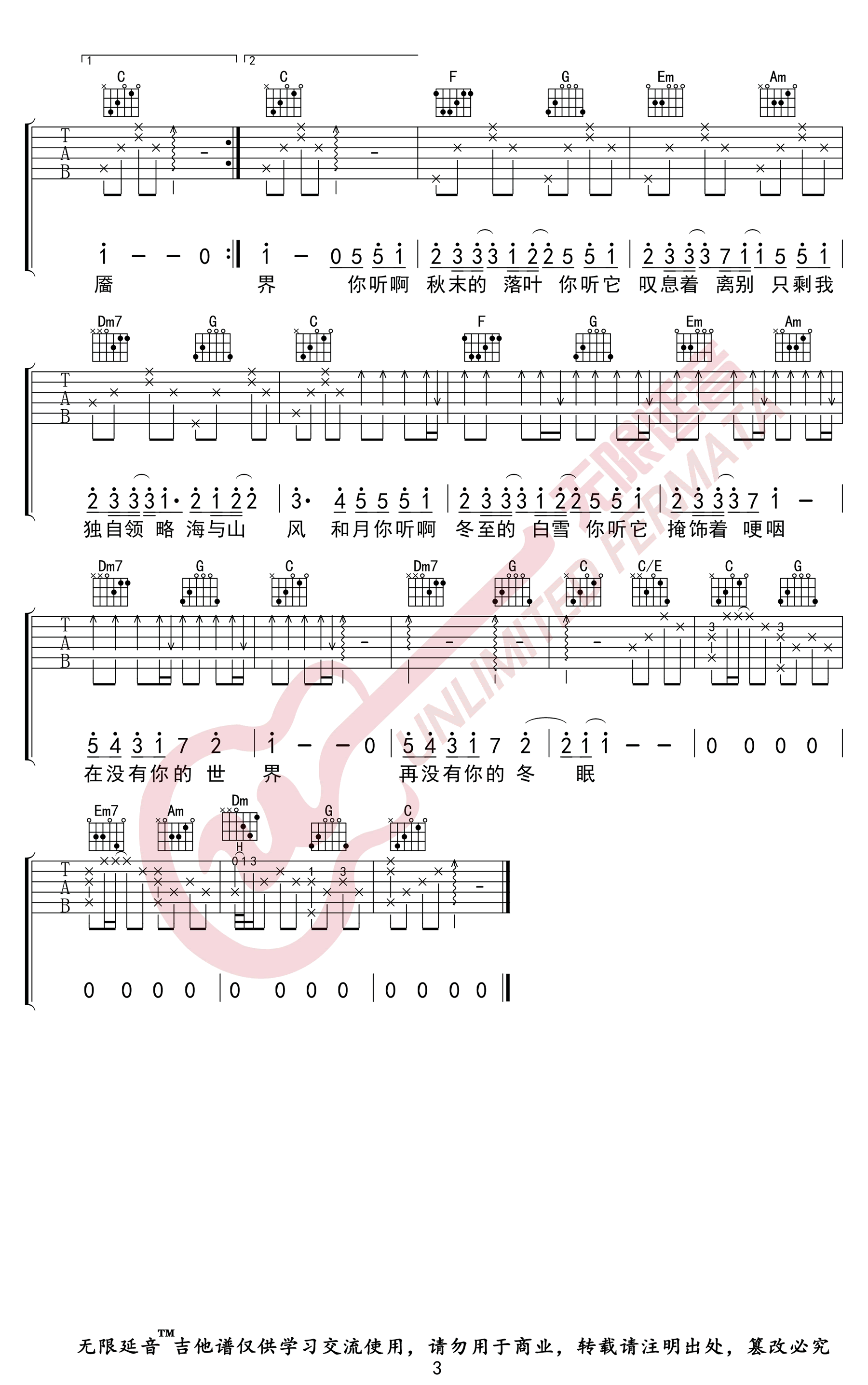 - 冬眠吉他谱_司南_C调弹唱谱_图片谱高清版