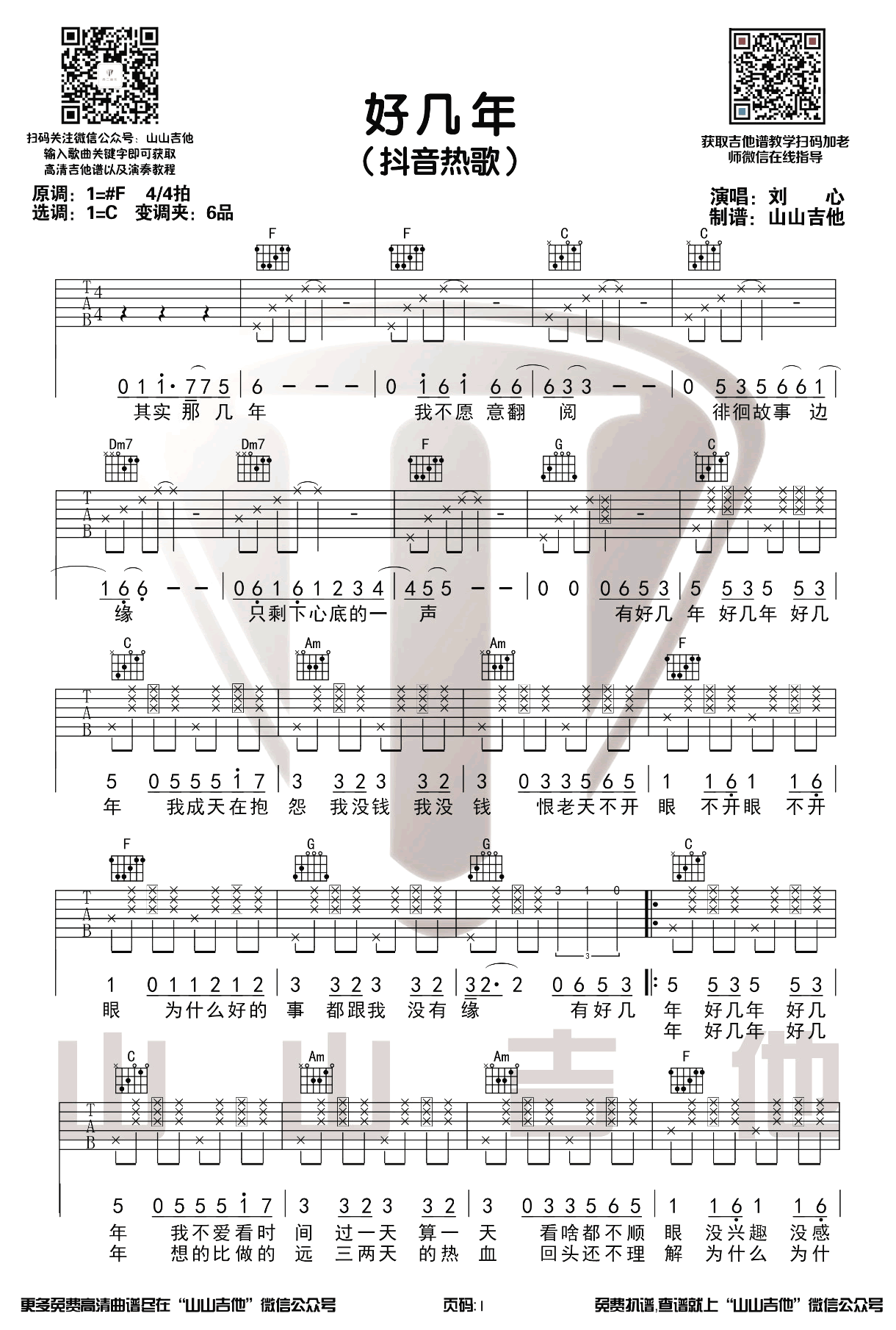 - 好几年吉他谱_刘心_C调原版吉他谱_抖音歌曲