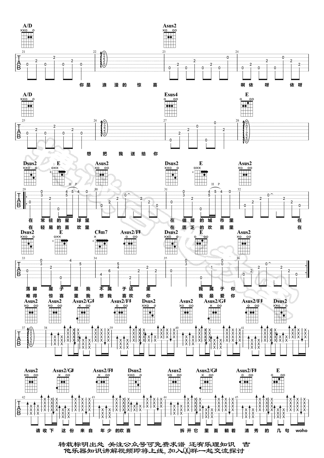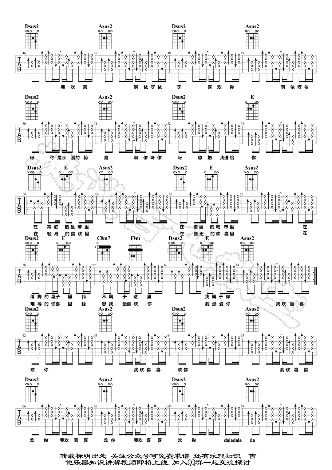 - 我欢喜喜欢你吉他谱_焦迈奇_弹唱图片谱