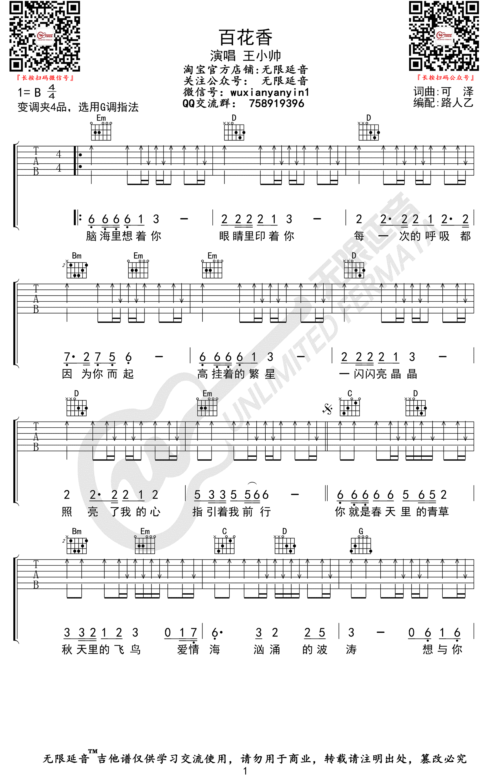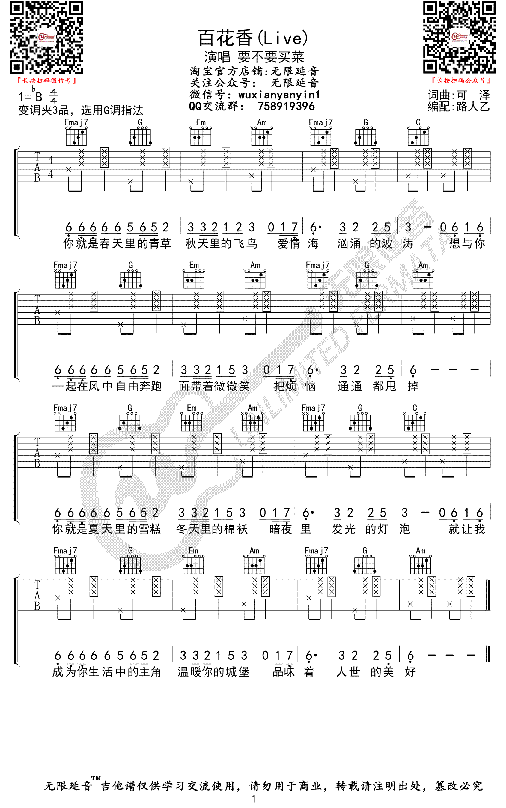 - 百花香吉他谱_王小帅/要不要买菜_G调弹唱谱