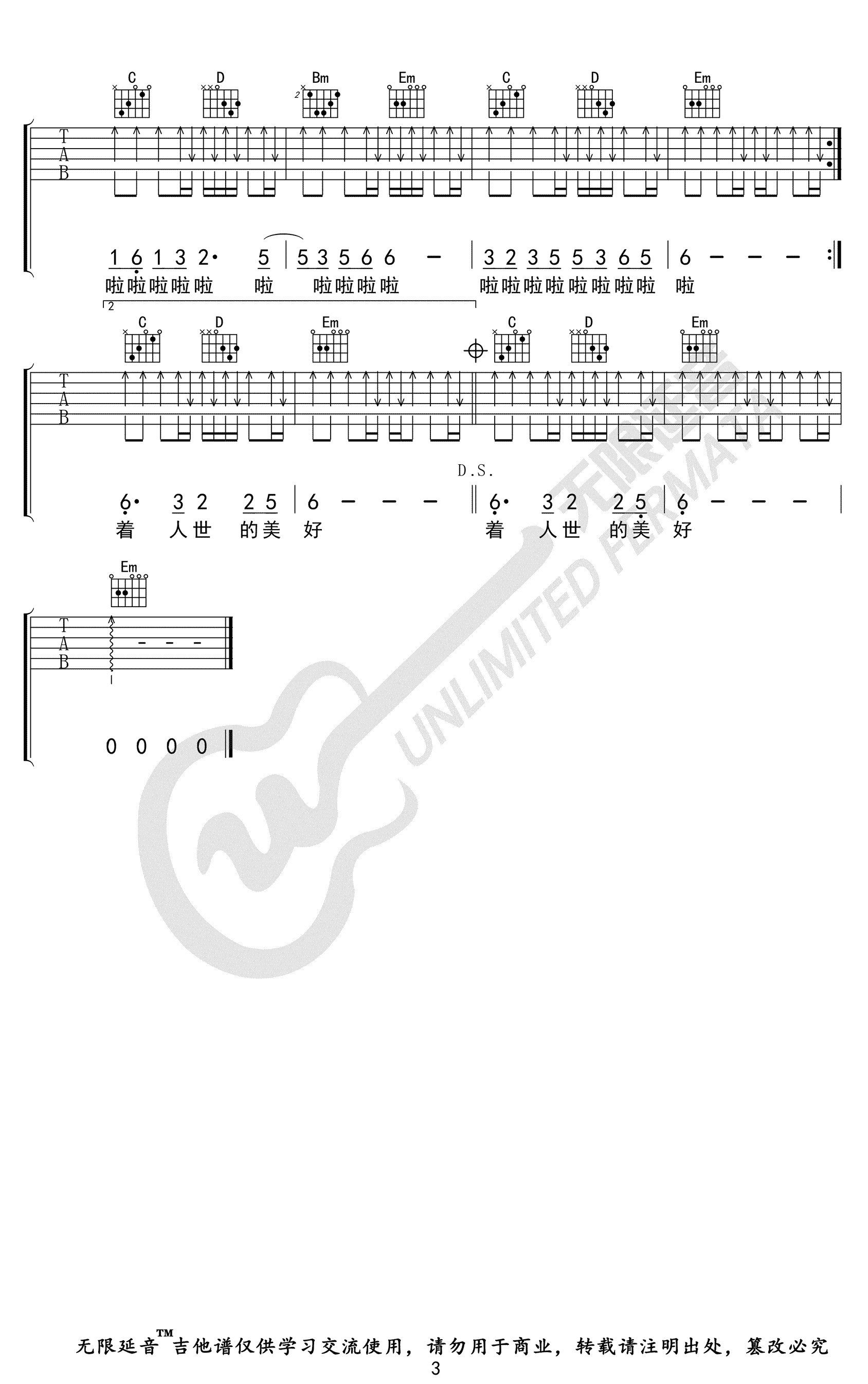 - 下山吉他谱_要不要买菜_G调六线谱_高清版