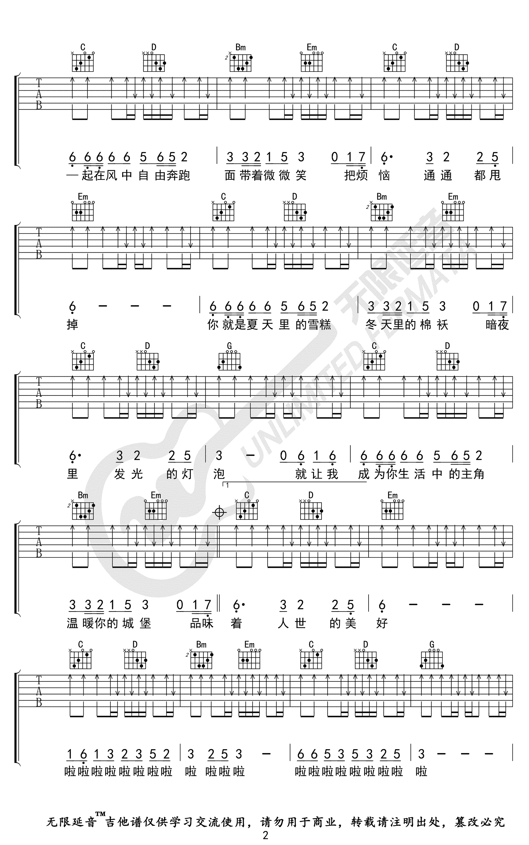 - 棉子《勇气》吉他谱_调弹唱谱_抖音热门歌曲