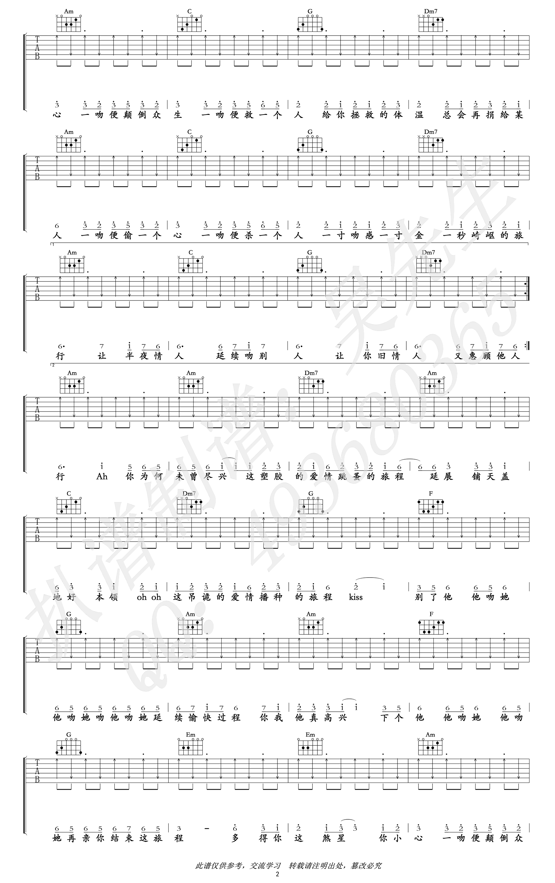 - 处处吻吉他谱_杨千嬅_C调六线谱_高清图片谱