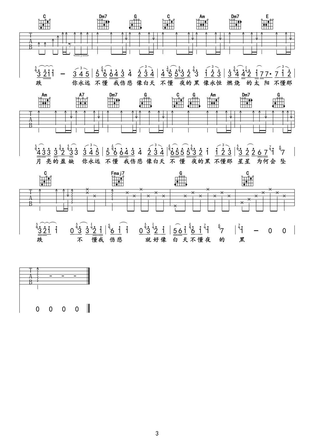 - 冬眠吉他谱_司南_C调弹唱谱_图片谱高清版