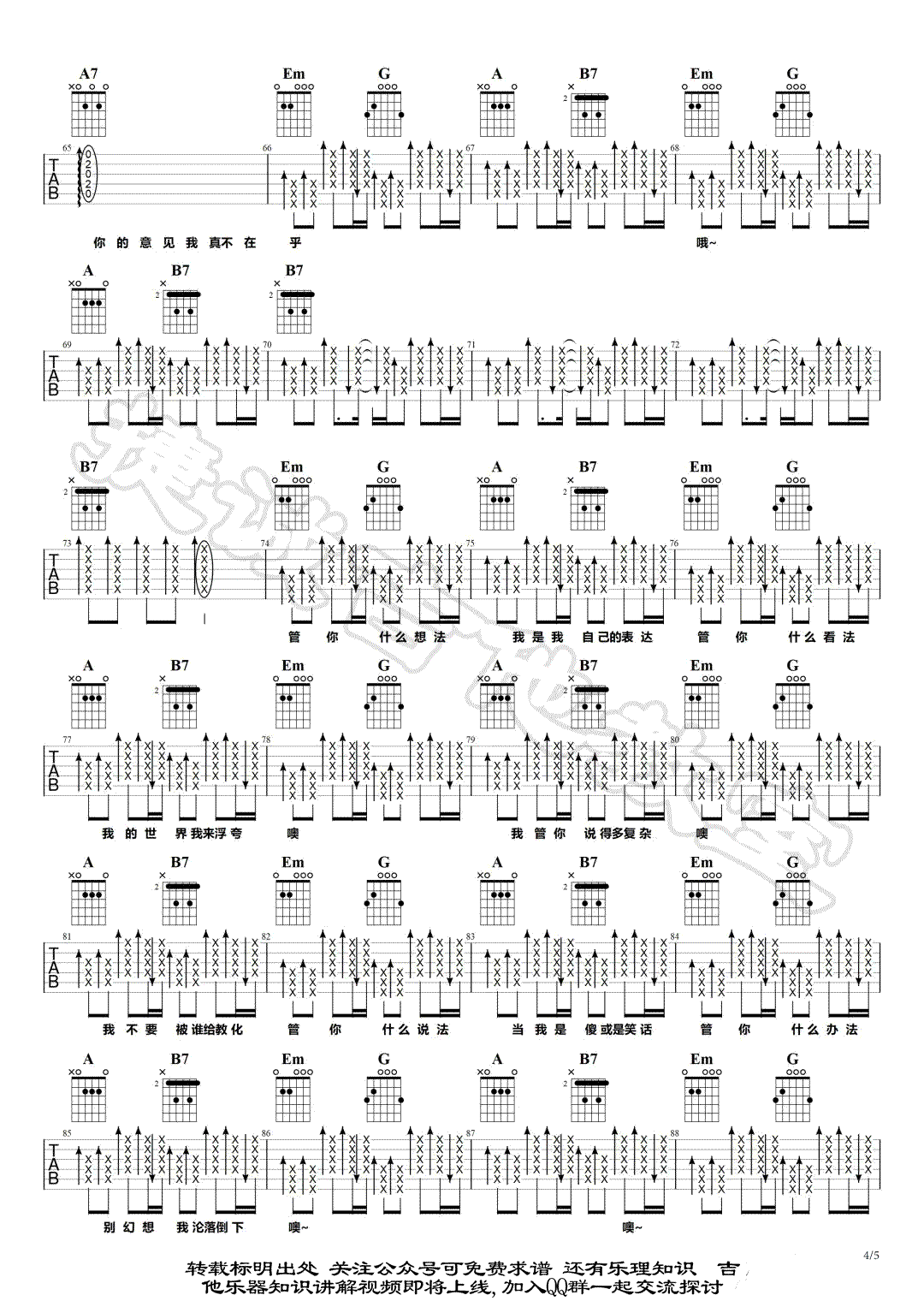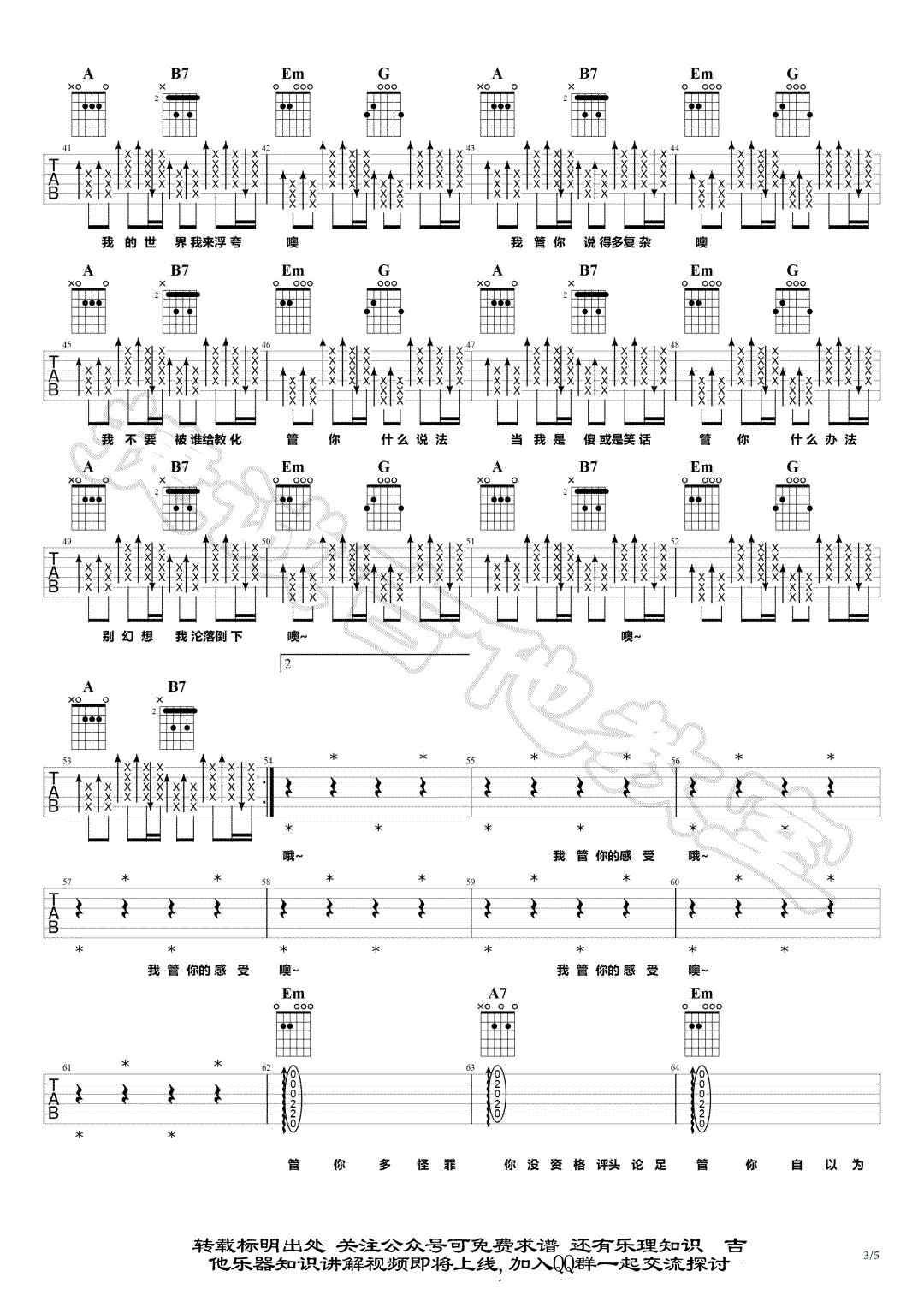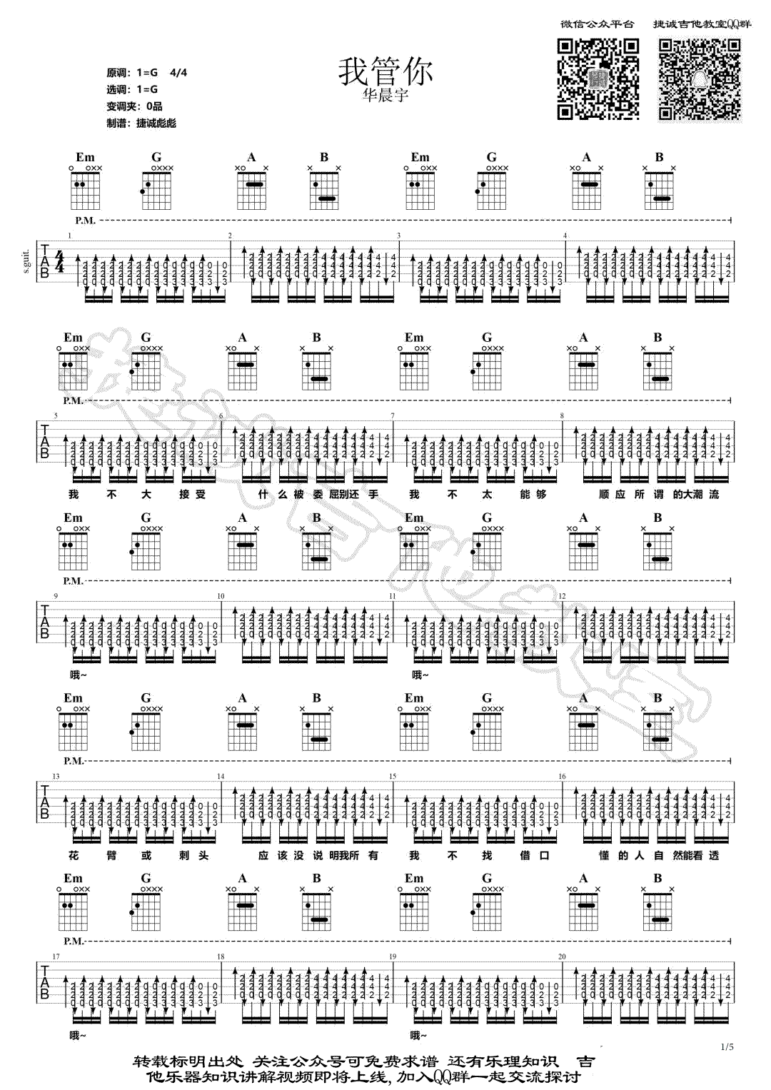 - 我管你吉他谱_华晨宇_G调六线谱_弹唱谱完整版
