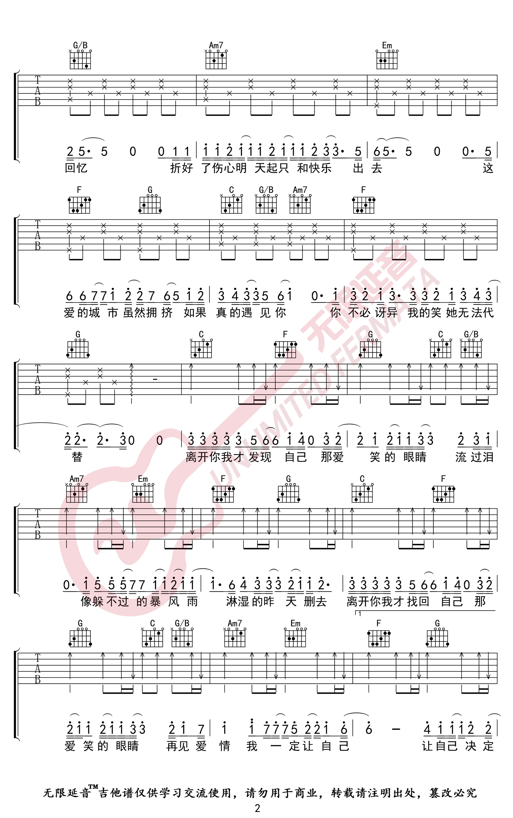 - 爱笑的眼睛吉他谱_C调女生版_弹唱演示视频