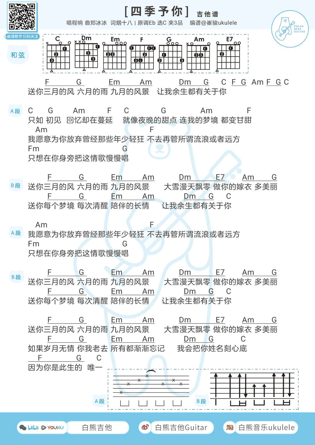 - 四季予你吉他谱_程响_和弦弹唱谱+尤克里里谱