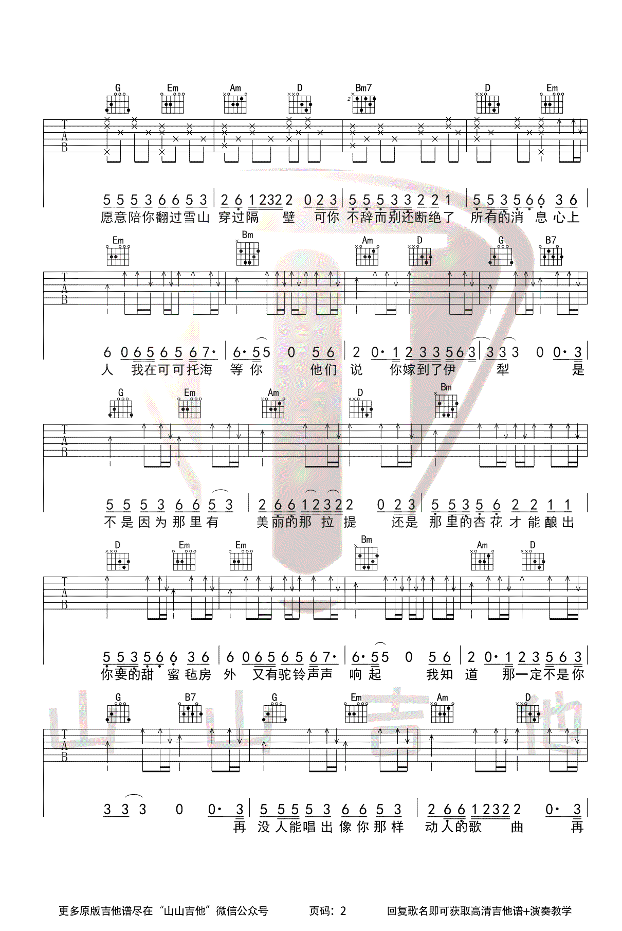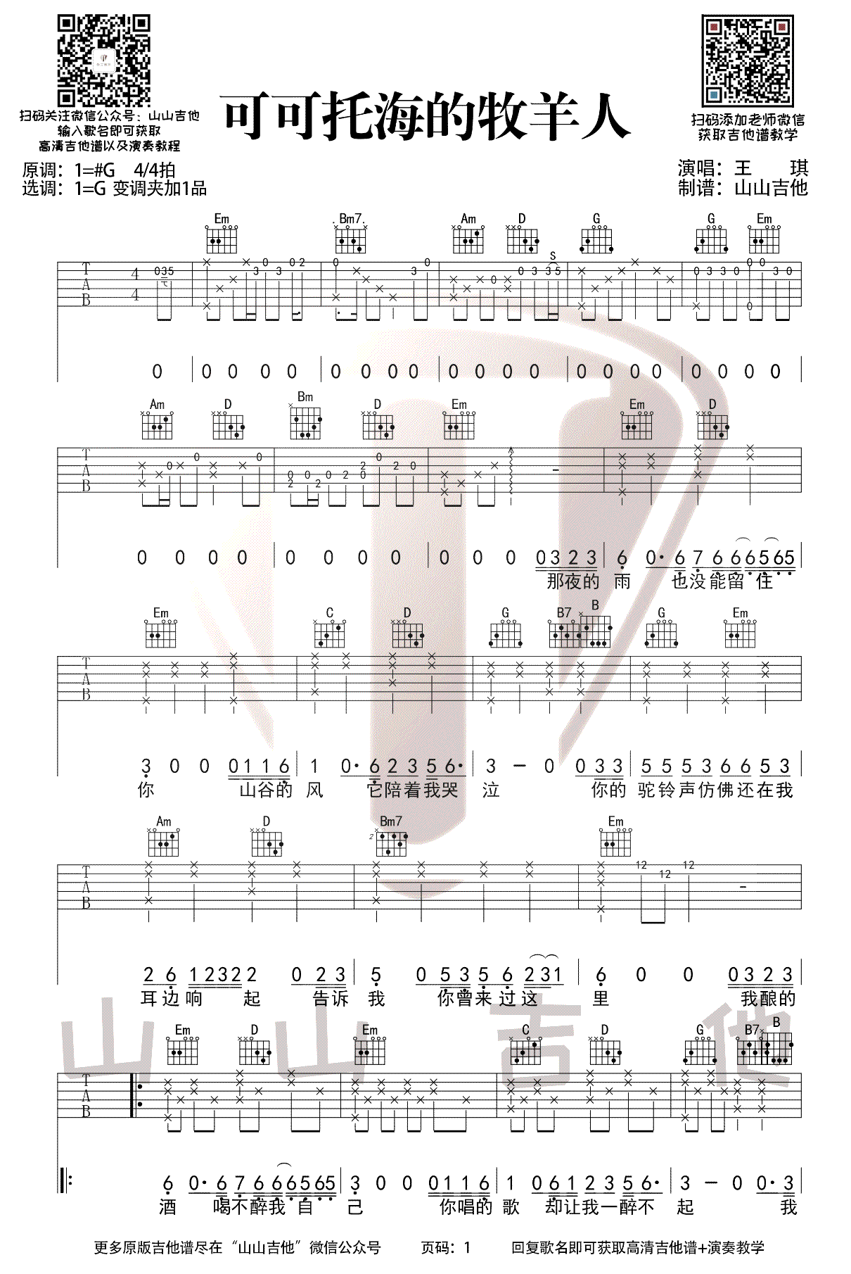 - 可可托海的牧羊人吉他谱_王琪_G调_原版吉他谱