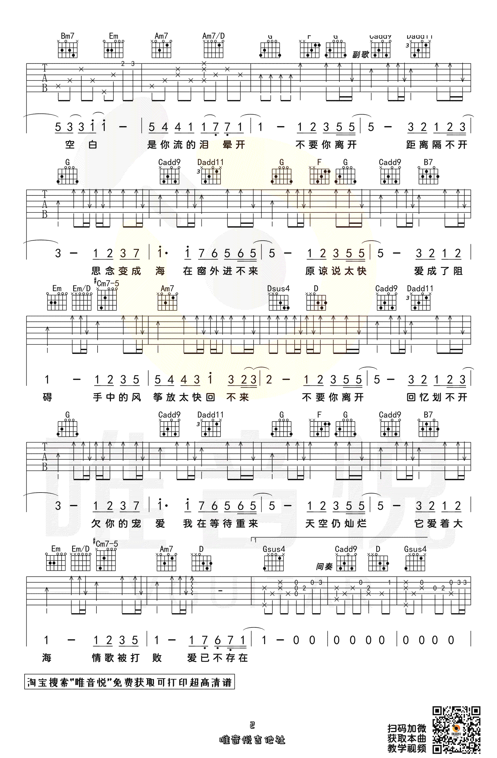 - 周杰伦《花海》吉他谱_G调指法_带前奏六线谱